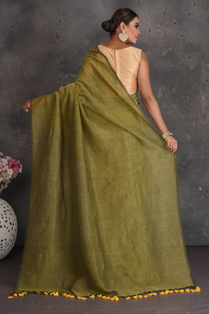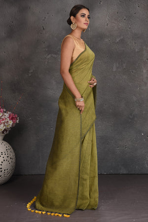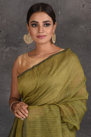 Go for a minimal ethnic style in this beautiful pista green zari stripes handloom cotton sari. It comes with a matching blouse piece. Shop cotton sarees in USA from Pure Elegance.