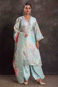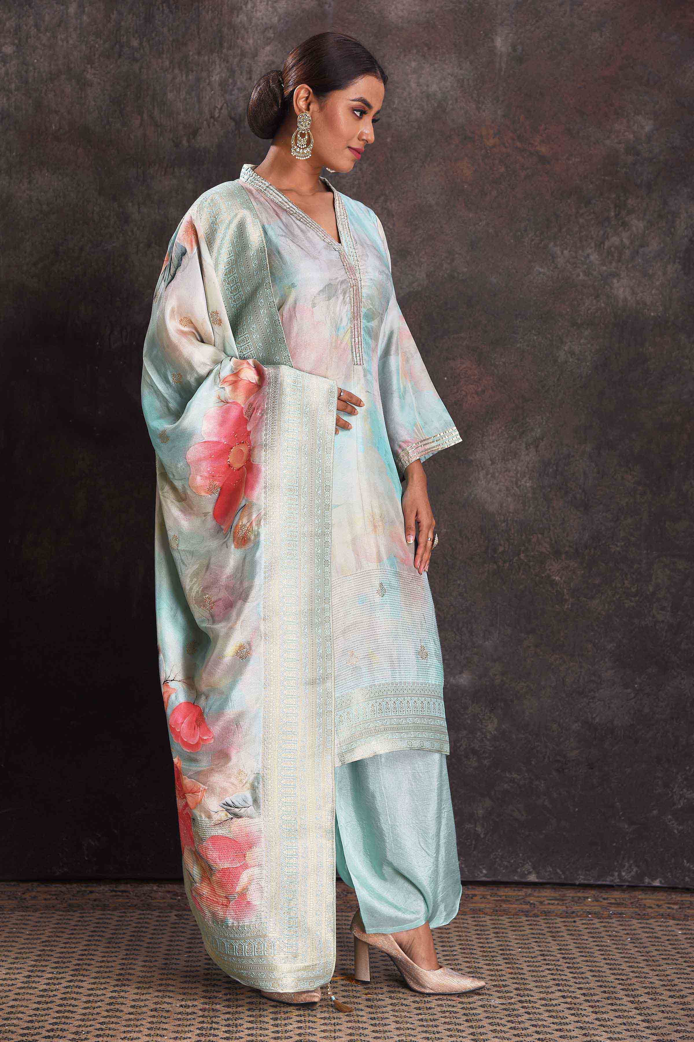 503309 Powder Blue Floral Print Salwar Suit with Dupatta