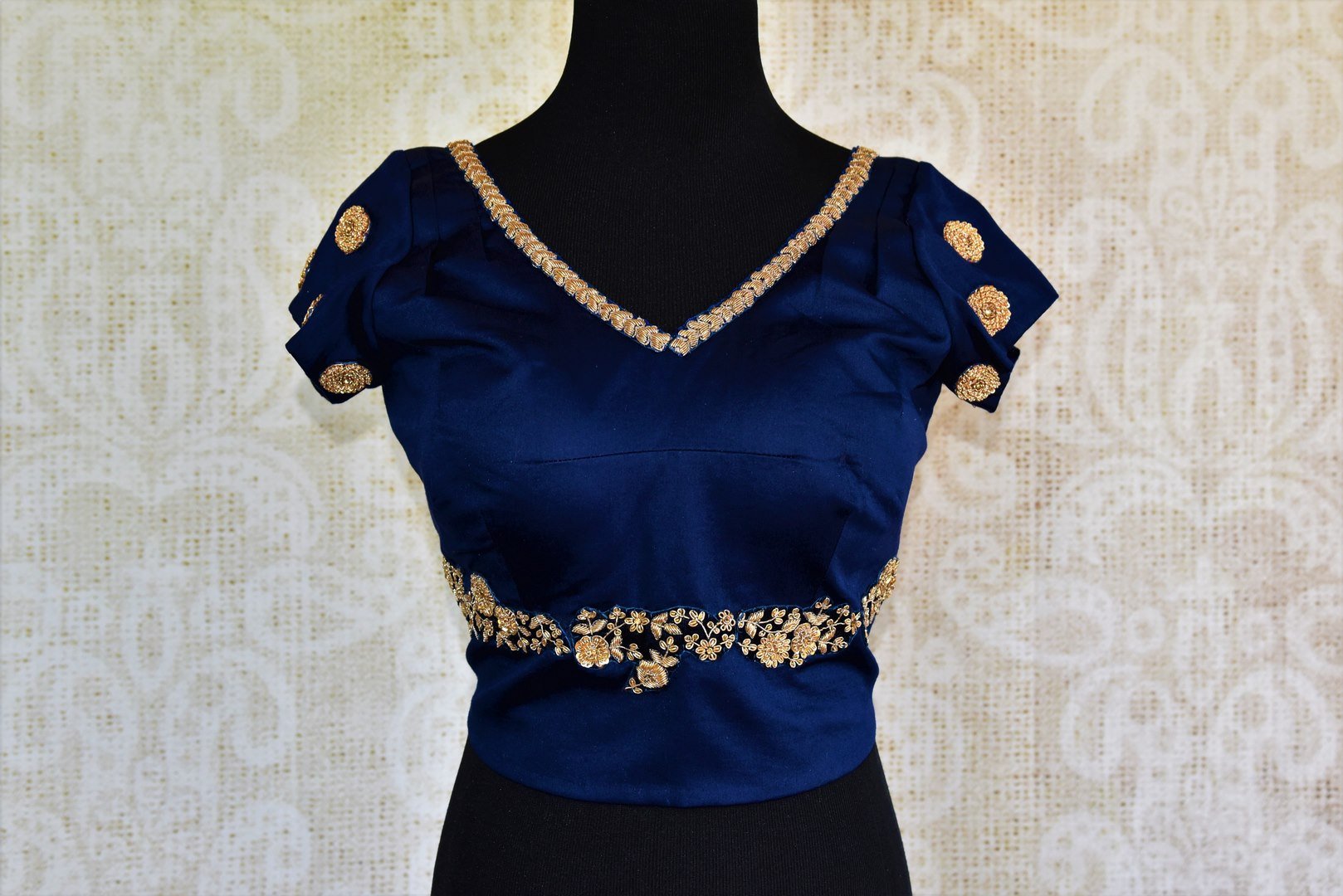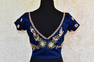 Stylish royal blue designer silk blouse is a perfect match to make your saris extraordinary. The blouse has a unique pattern with intricate embroidery scattered throughout. Buy online from Pure Elegance or visit our store in USA!