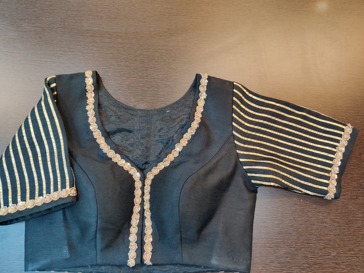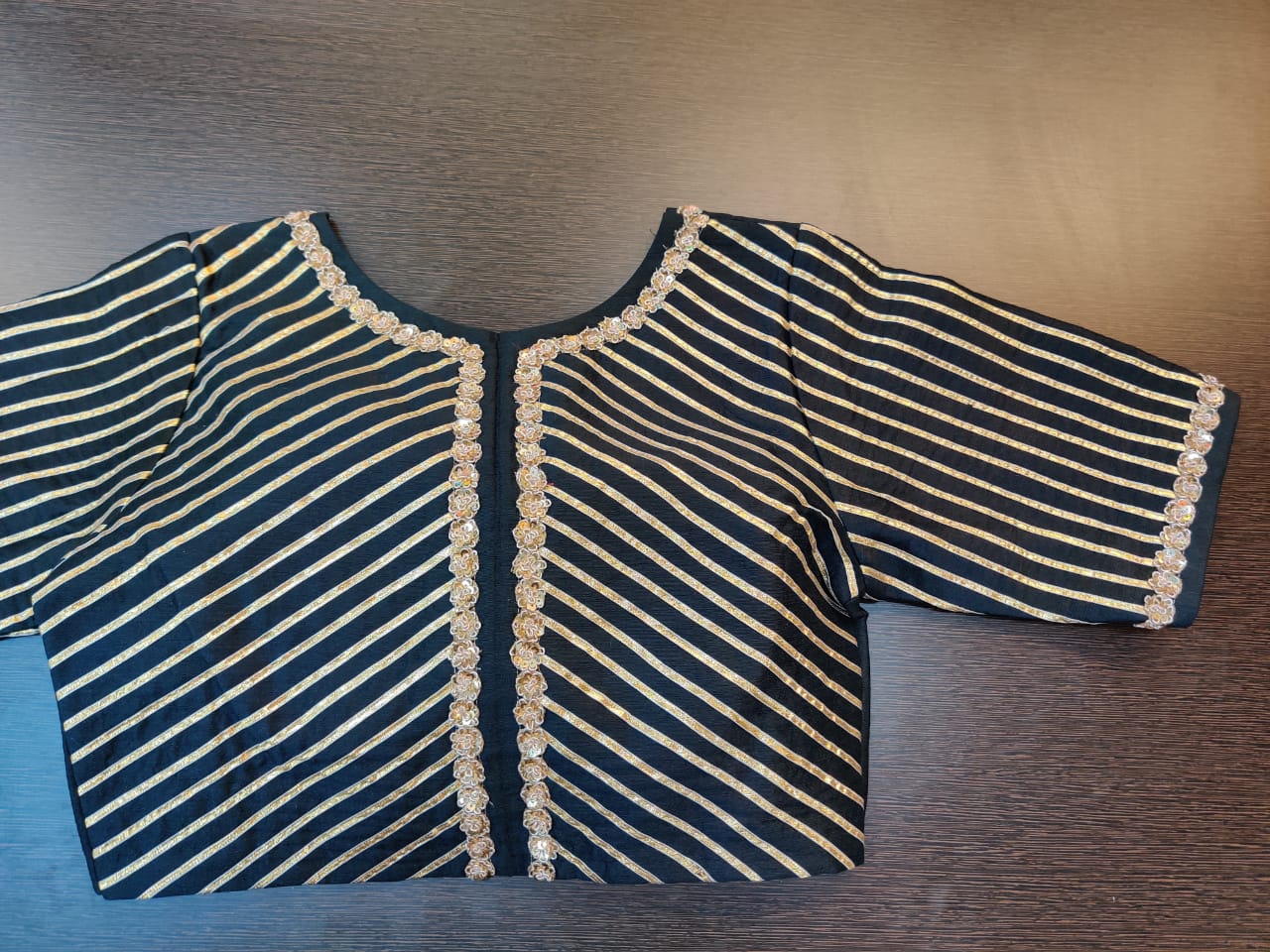 Beautiful black designer gota lace saree blouse. Shop designer saree blouse online in USA from Pure Elegance.