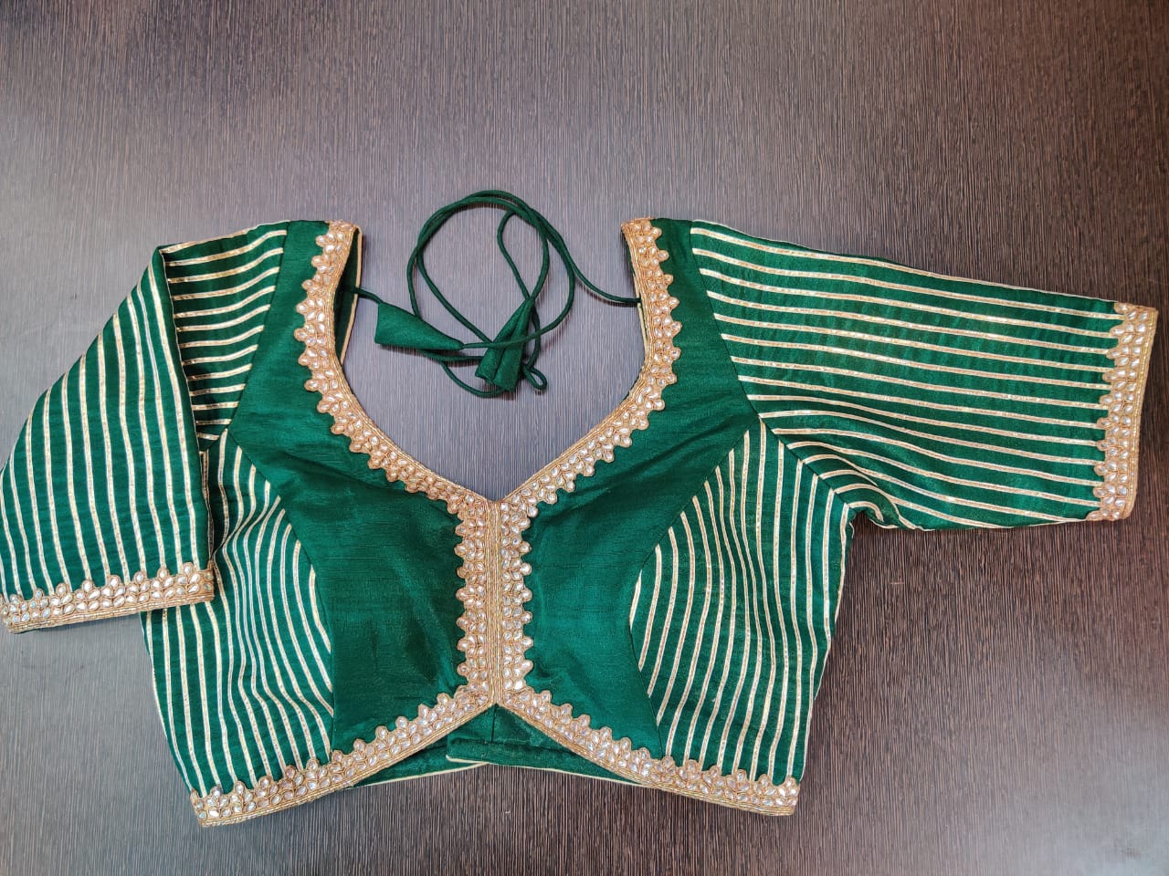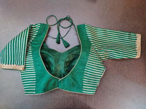 Gorgeous dark green gota embroidery saree blouse. Buy designer blouse in USA from Pure Elegance.