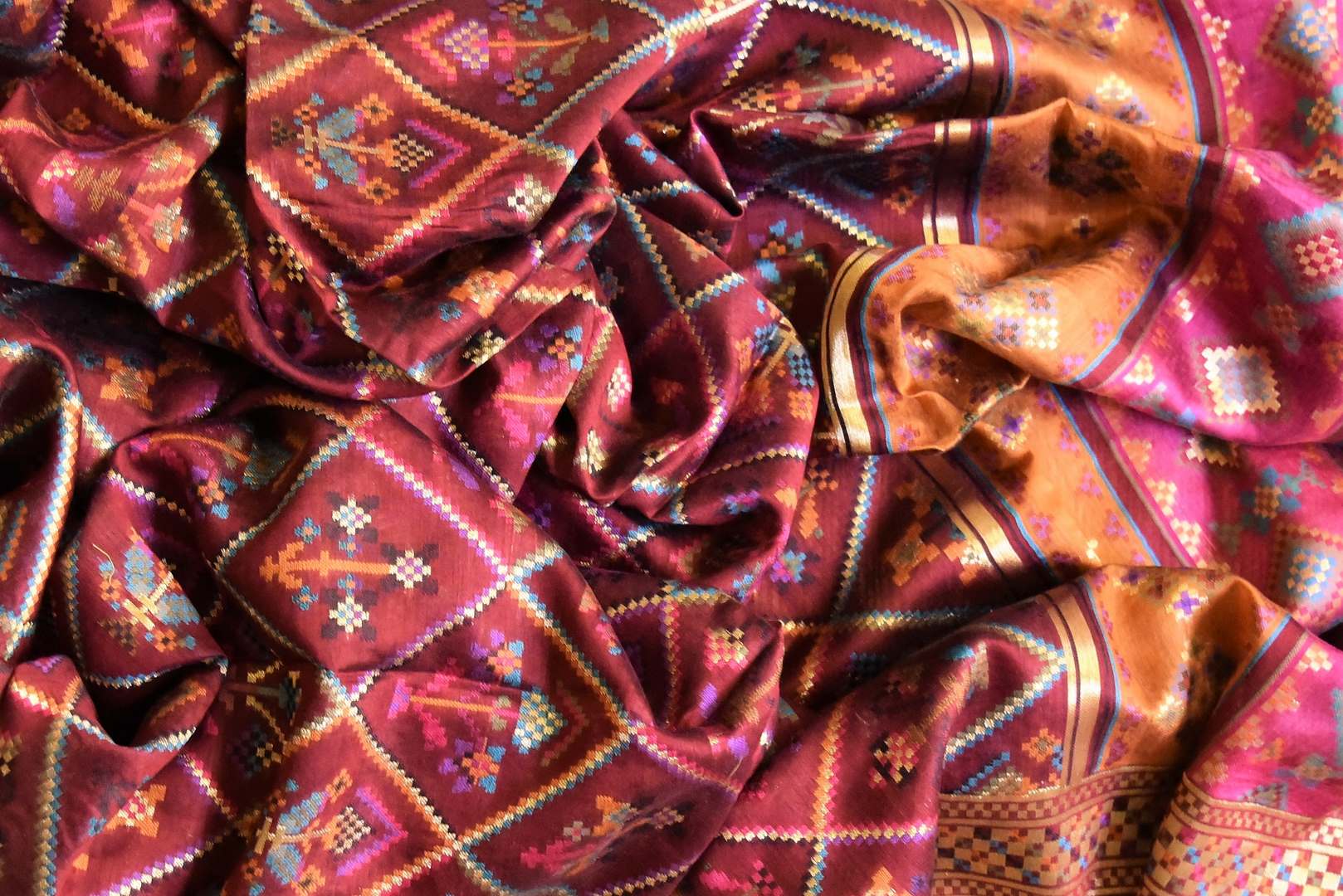 Alluring traditional dark pink Kani dupatta is a perfect pair up for your plain salwar suits.