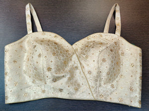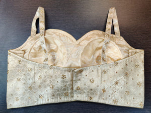 Stunning golden embellished designer sari blouse. Buy designer blouse in USA from Pure Elegance.
