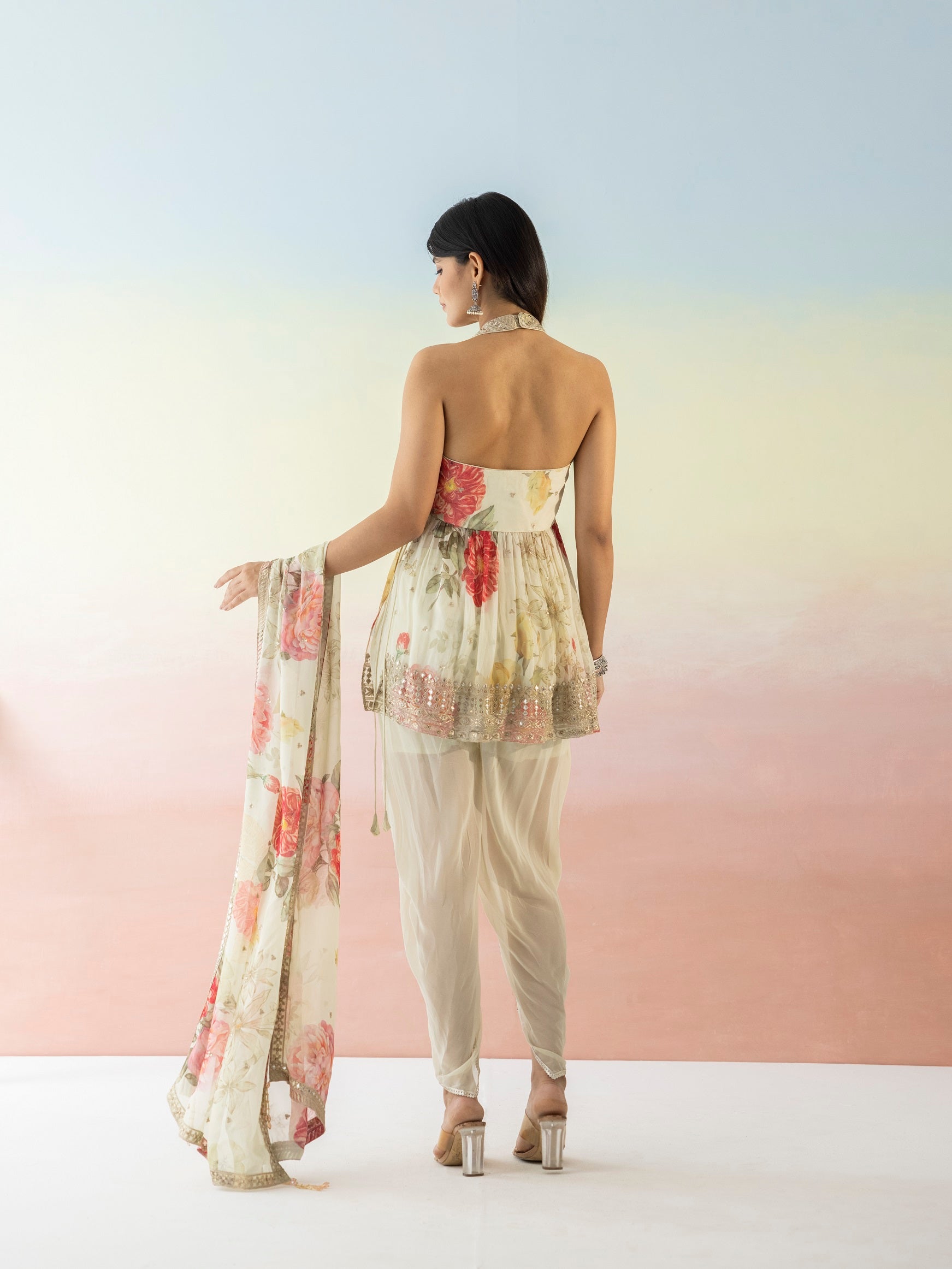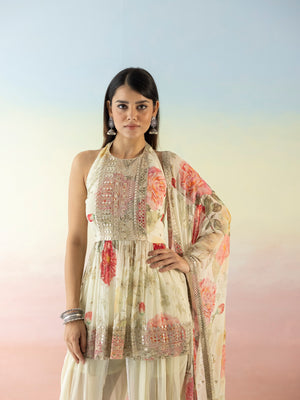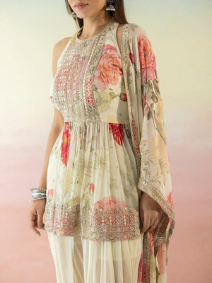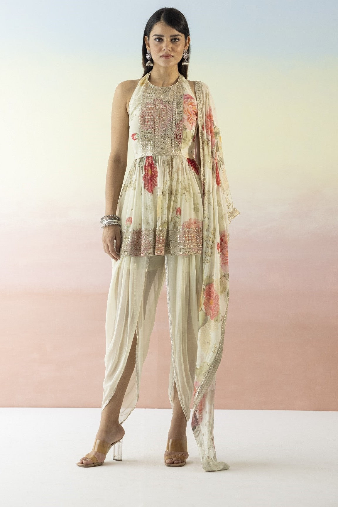 Go for this stylish ivory printed georgette kurta with dhoti at parties and special occasions. Shop designer dresses online in USA from Pure Elegance.