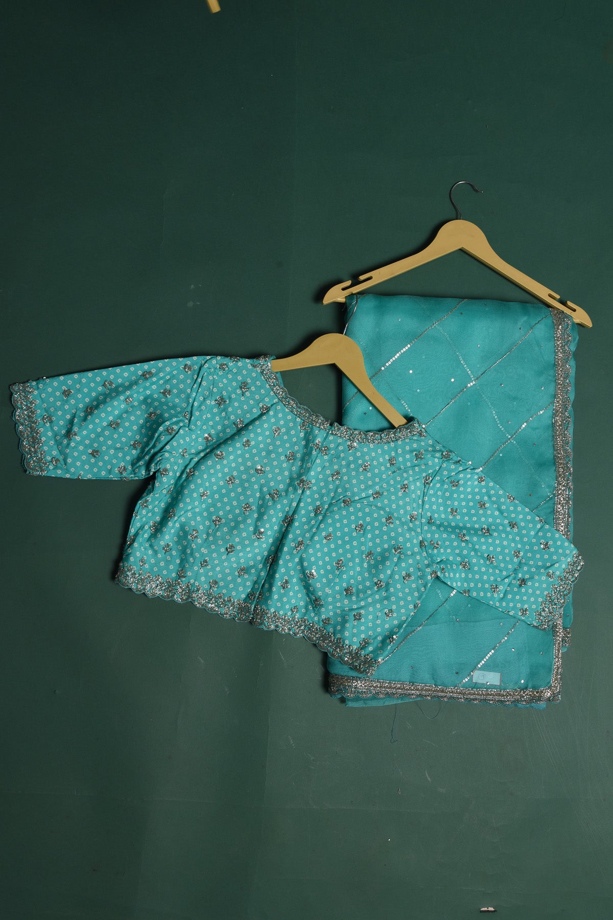 DISCLAIMER:- The shown stitched blouse on the model is for display purpose only. The saree comes with a matching blouse piece and finished with fall and piko.