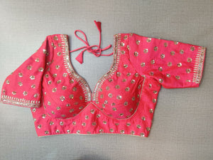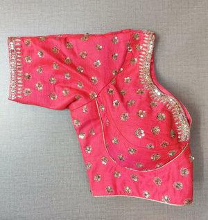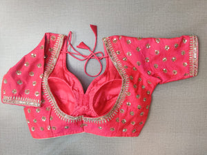 Beautiful pink embroidered designer saree blouse. Buy designer blouse in USA from Pure Elegance.