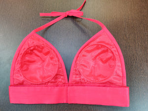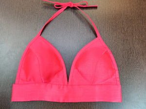 Stunning pink halter neck bikini sari blouse. Buy designer blouse in USA from Pure Elegance.