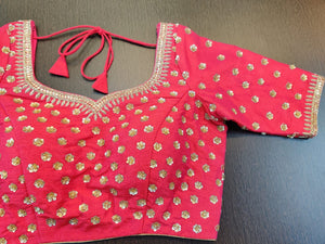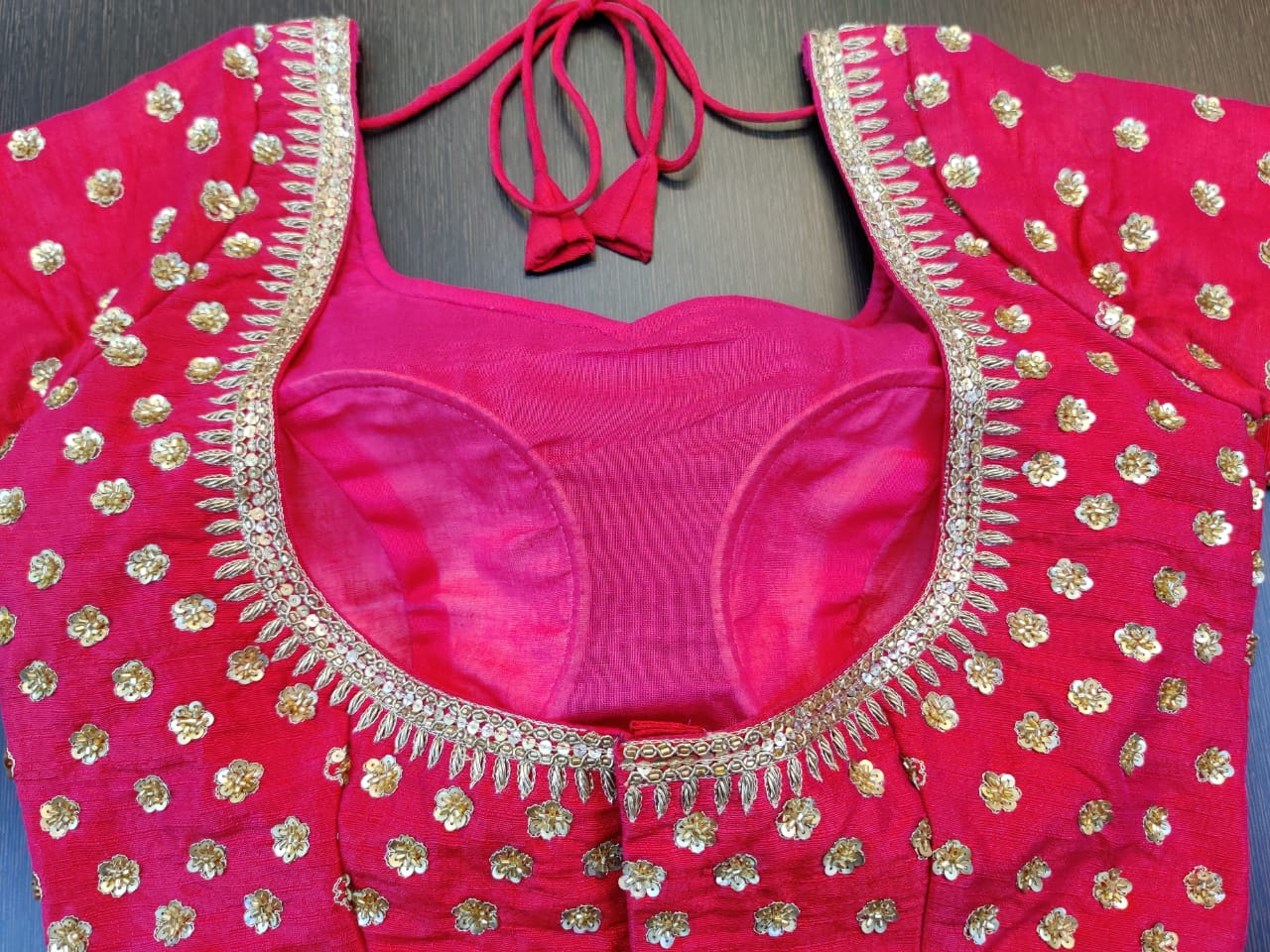 Gorgeous pink saree saree blouse with embroidered flowers. Buy online from Pure Elegance