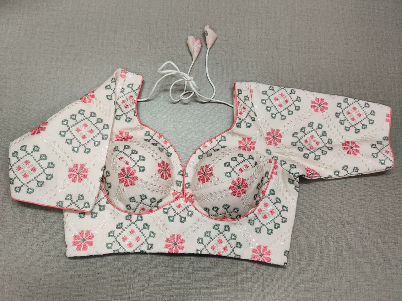 Pair your summer sarees with this beautiful white embroidered designer saree blouse for a perfect ethnic look! Buy designer blouse in USA from Pure Elegance..