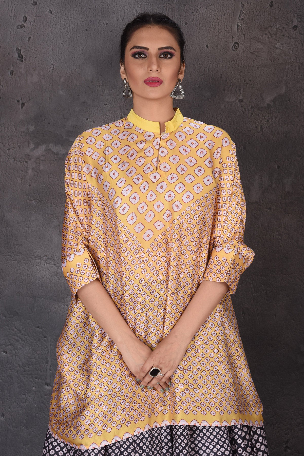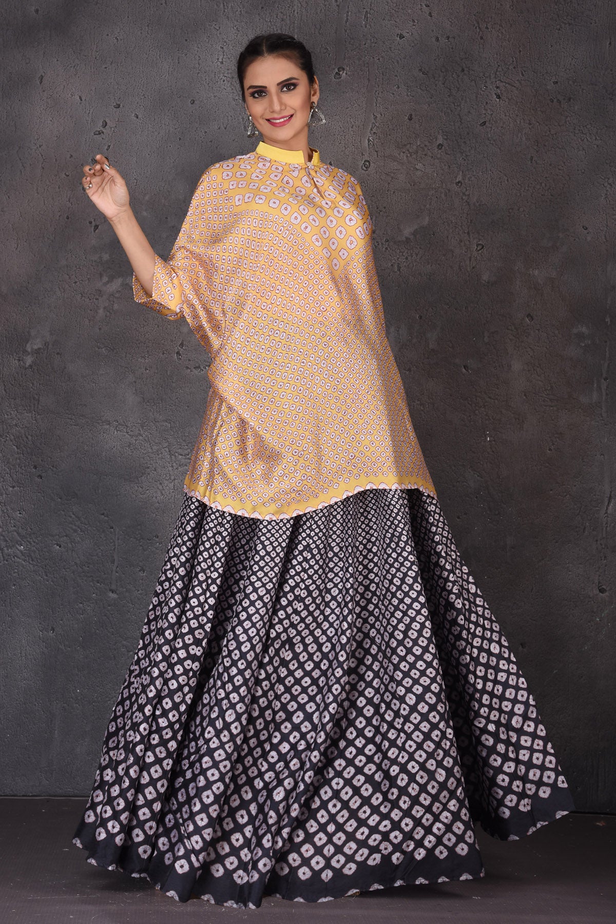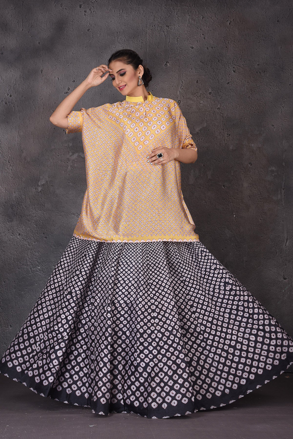 502849 Yellow and Black Bandhej Print Skirt Set