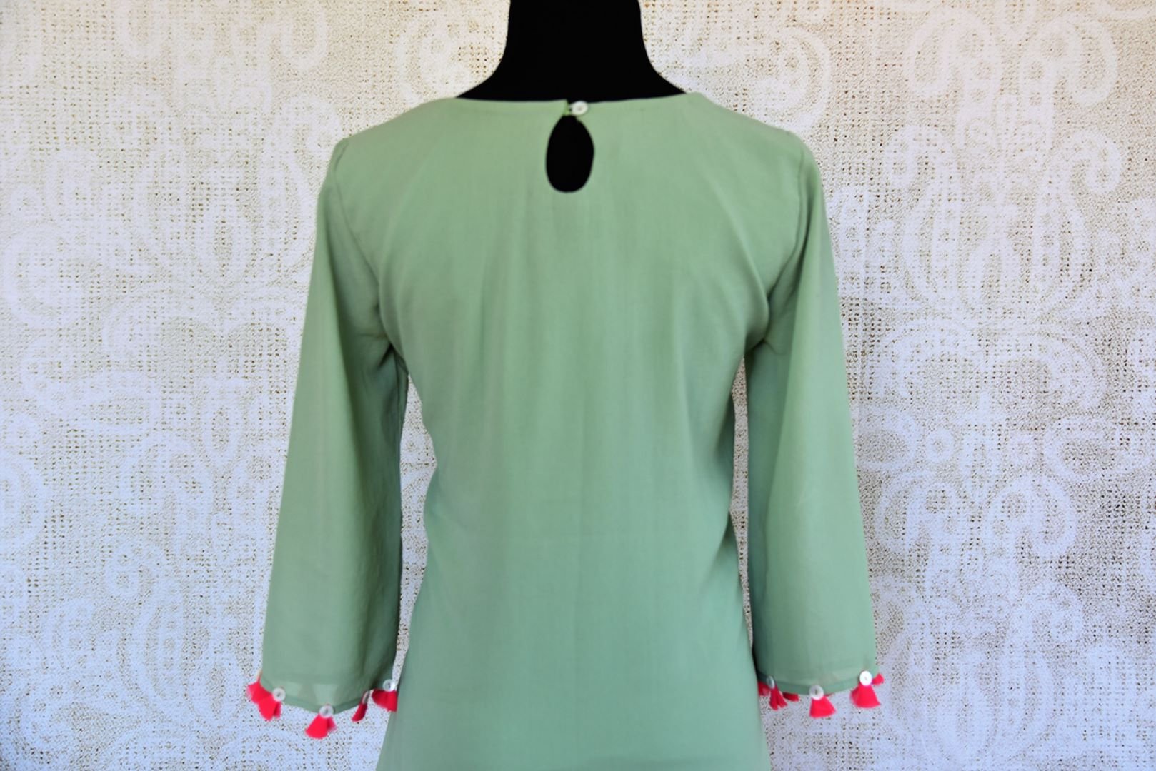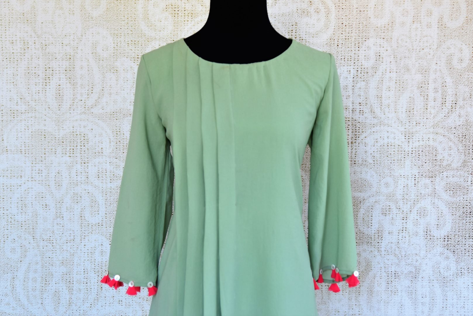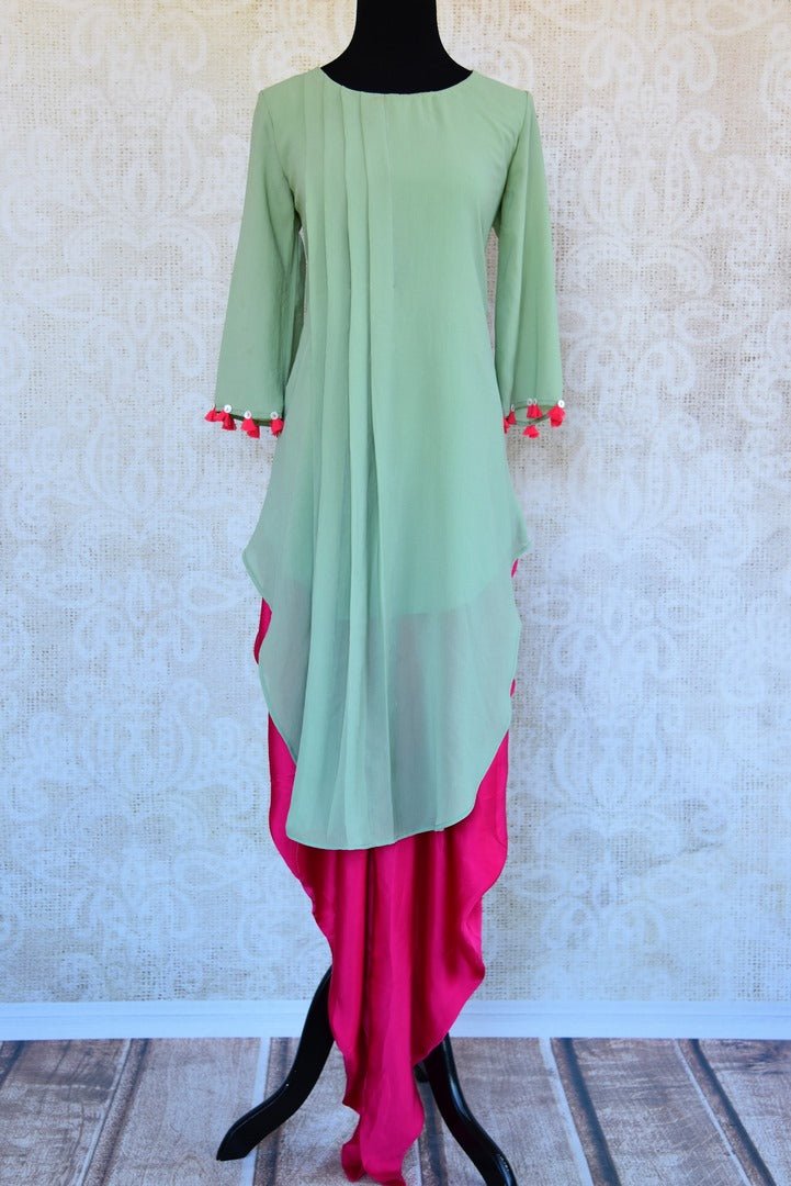 Give your Indian look a classy touch with simple and elegant green and pink georgette dress on parties. Team with Indian silver jewelry for a perfect finishing touch. Shop online at Pure Elegance or visit our store in USA!