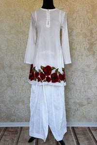 Cut a crisp picture in white embroidered patiala salwar suit for an everyday look. Buy online from Pure Elegance or visit our store in USA!