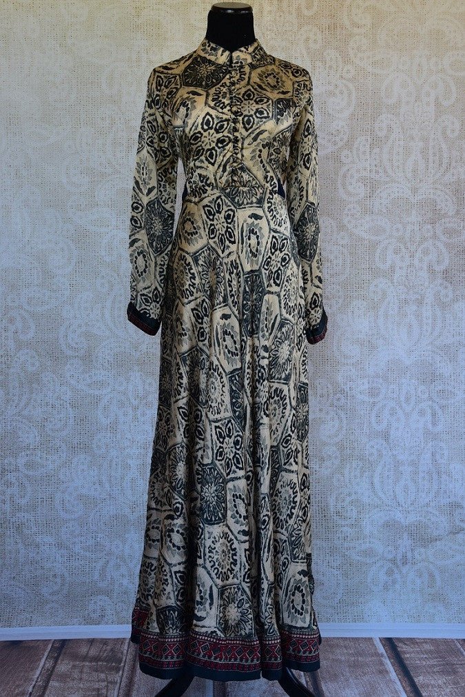 Long classy silhouette with a closed neck and long sleeves giving an elegant look. Perfect for any semi-formal or ethnic occasion.