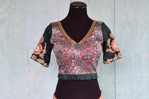 401941 V-Neck Half sleeved Purple and Green Embroidered Banarasi Blouse