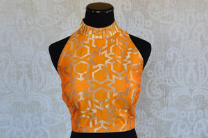 401902 Orange Halter Neck Crop Top Sleeveless Benarasi Designer Blouse