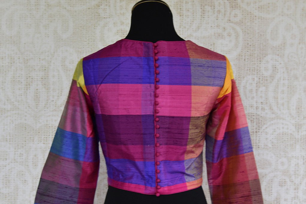 402222 Purple Multicolor Checker Ikkat Silk Long Sleeve Blouse