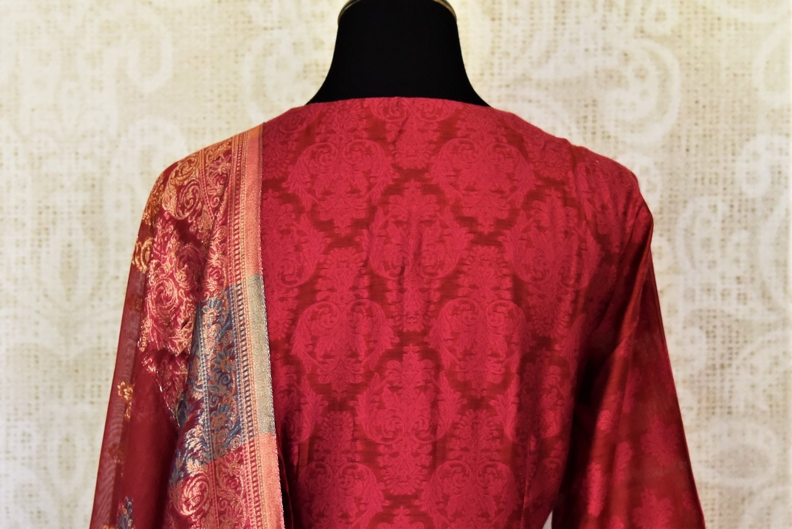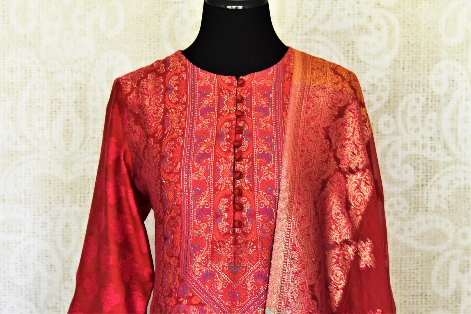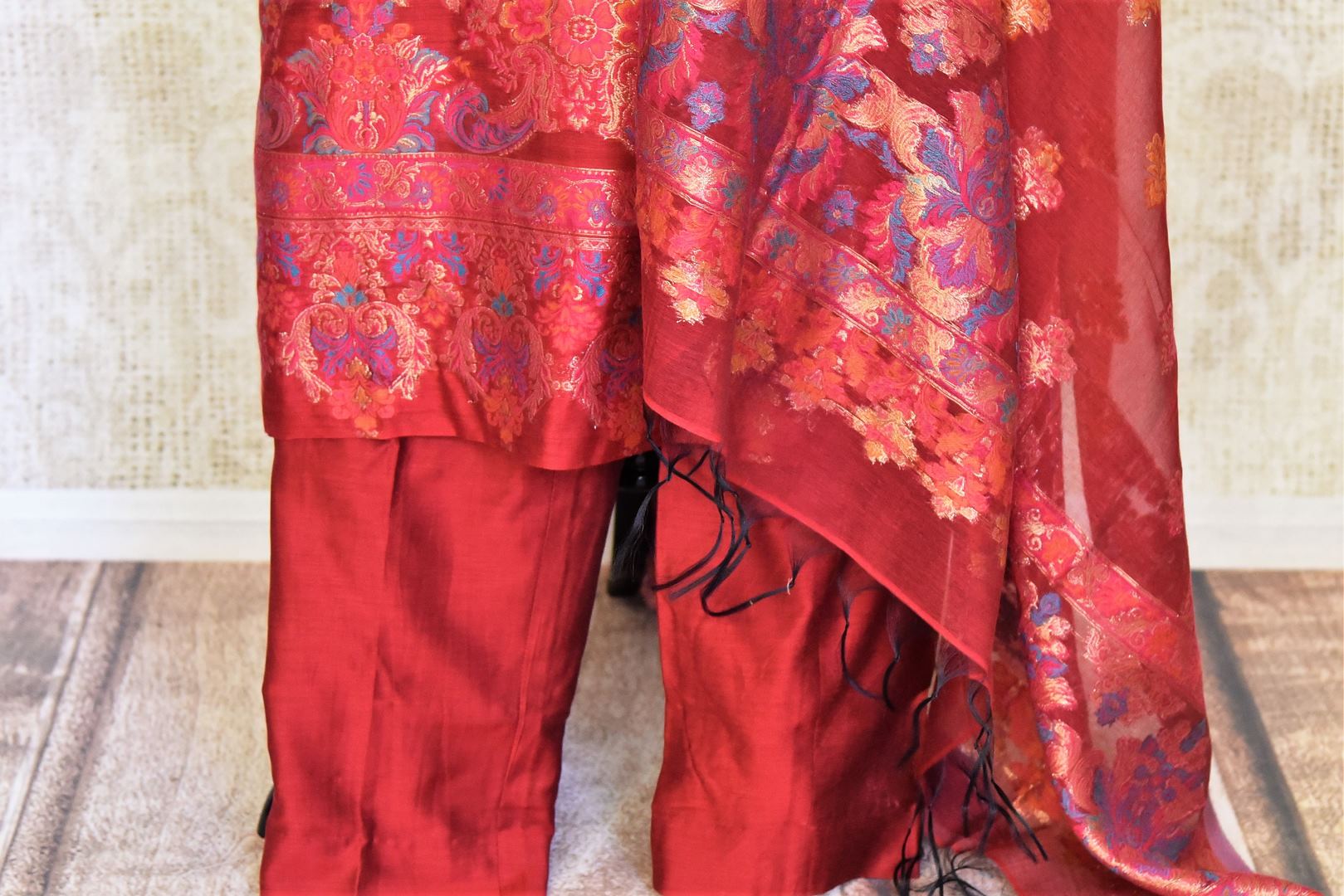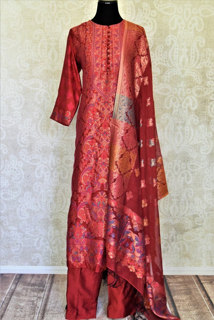 Elegant red Kani silk suit with dupatta. Shop Indian suits in USA from Pure Elegance.