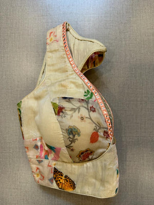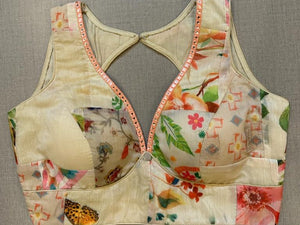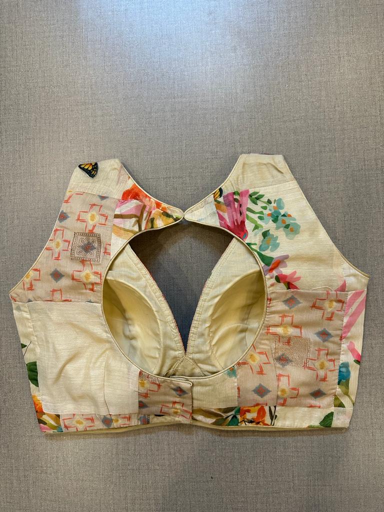 This blouse is a rich add-on to glam up your look. The blouse features floral embroidery, a sleeveless blouse, and a tie-up closure at back. Team this blouse with a lovely solid saree to look gorgeous and create a stunning and beautiful look. Buy this designer blouse in the USA from Pure Elegance.