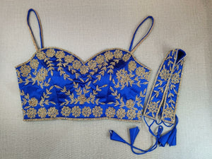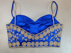 Exquisite dark blue color with golden embroidery work designer. It has a strappy blouse with a sweetheart front. Pair it with a contrasting saree to make your look more graceful. Buy this designer blouse in the USA from Pure Elegance.