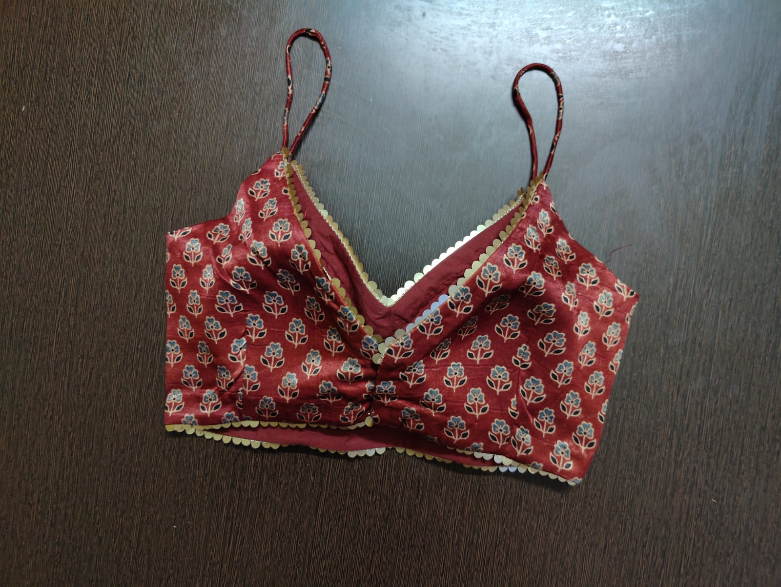 Indulge yourself in the blooming charm of summer with this maroon blouse. Featuring floral embroidery and sequin work on the sides, this blouse is the perfect night-occasion add-on. Buy this designer blouse in USA from Pure Elegance.