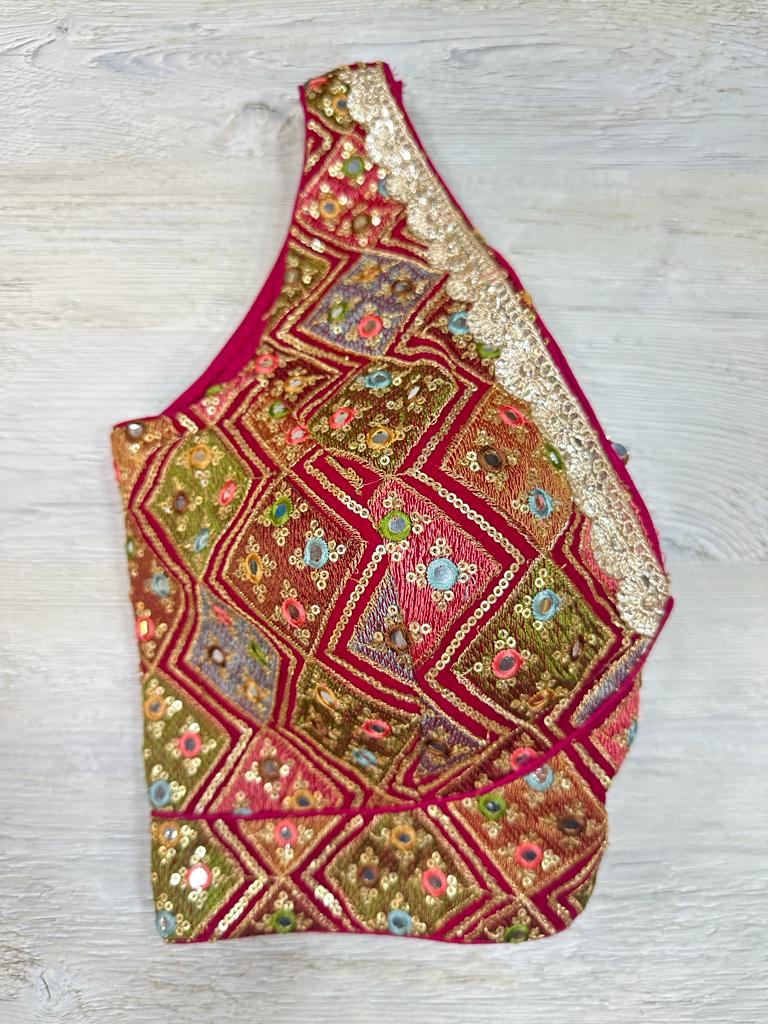 Maroon multicolored embroidered sleeveless blouse features thread & mirror work, hook closure & tie-up at the back. Team this blouse with a contrasting saree to look gorgeous and create a stunning and beautiful look. Buy this designer blouse in the USA from Pure Elegance.