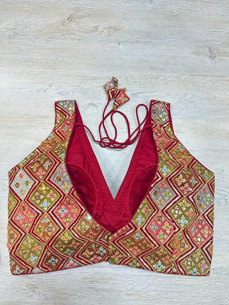 50W547-RO Maroon Multicolor Embroidered Blouse With Thread Work