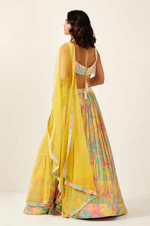 Look your best on wedding occasions in this beautiful green color lehenga with pearl and mirror embroidery, cut dana, and a beautiful blouse. Dazzle on weddings and special occasions with exquisite Indian designer dresses, sharara suits, Anarkali suits, bridal lehengas, and sharara suits from Pure Elegance Indian clothing store in the USA. Shop online from Pure Elegance.