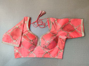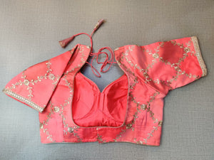 Classic is never old and enough to have in your closet!! Pair this fashionable orange blouse with beautiful floral embroidery, pair this with a beautiful sari and statement neck piece and you are good to go! It has a beautiful U shape neck in front & back, short sleeves, hook closure, and a tie-up at back. Buy this designer blouse in the USA from Pure Elegance.