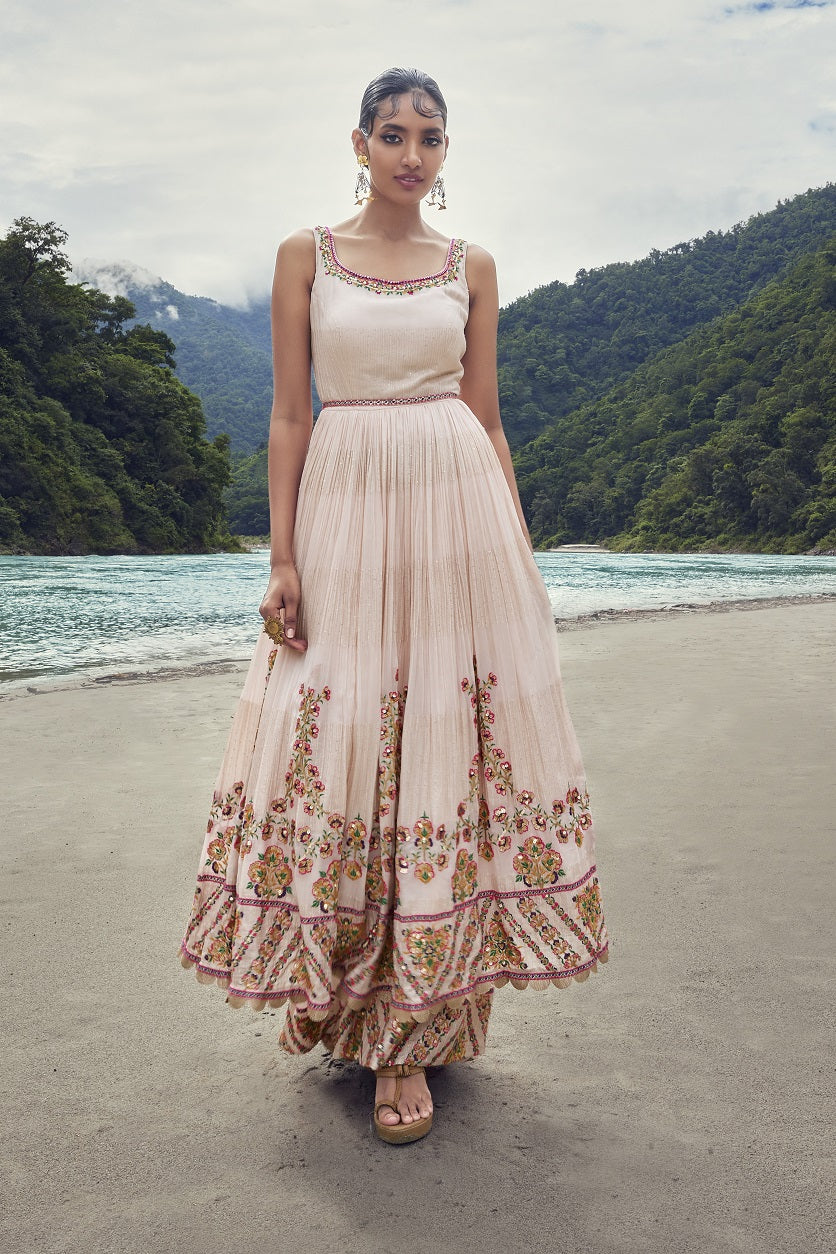Beautiful white embroidered georgette anarkali suit. The suit is perfect for occasions like weddings and festivals. Shop online from Pure Elegance.