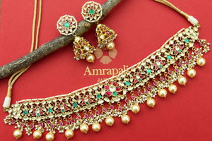 Beautiful Amrapali gold plated kundan and pearl necklace set is a perfect accessory to uplift any suit or saree. Shop gold plated jewelry in USA from Pure Elegance.