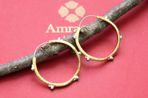 Exquisite gold plated multicolor stone hoops from Amrapali. Buy gold plated Indian jewelry in USA from Pure Elegance.