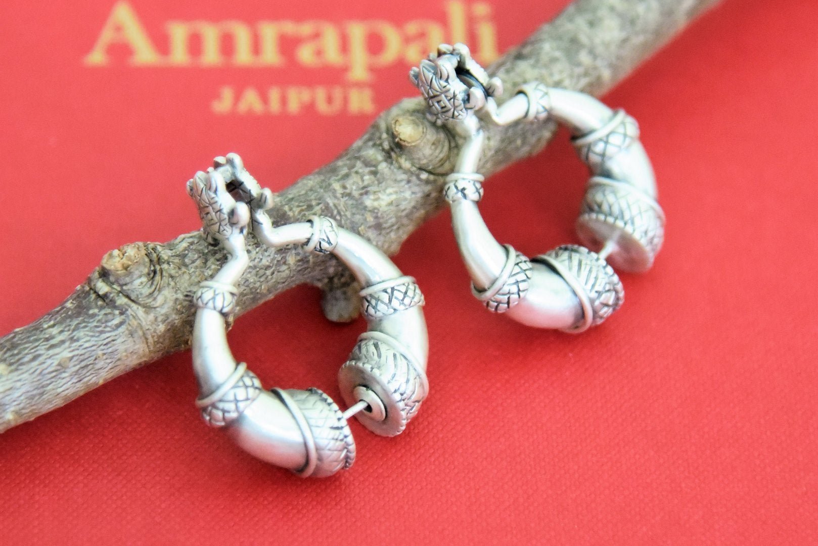 Beautiful silver ethnic hoop earrings. Shop Amrapali jewelry online in USA from Pure Elegance.