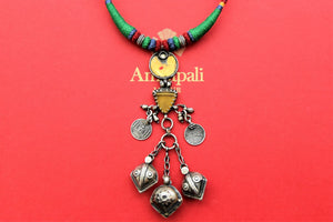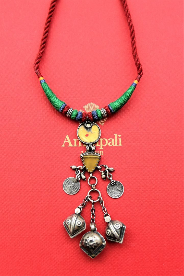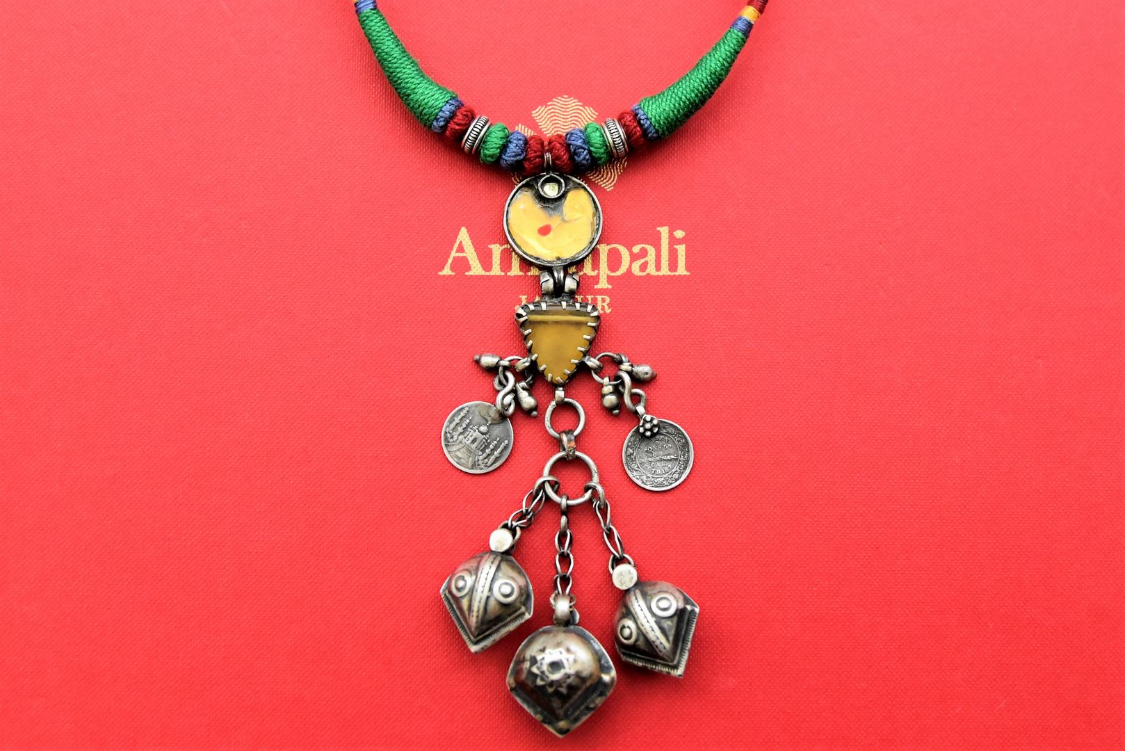 Beautiful antique silver glass multicolor thread necklace. Shop Amrapali jewelry in USA from Pure Elegance.