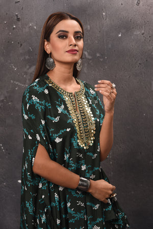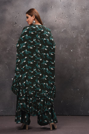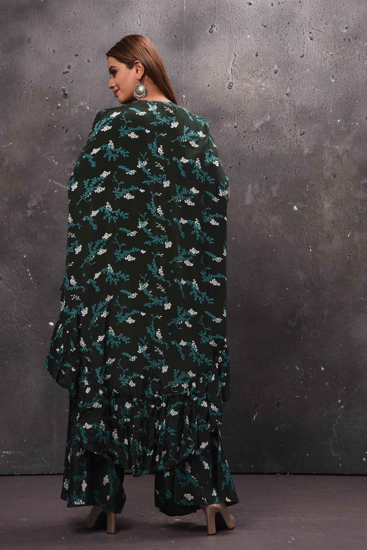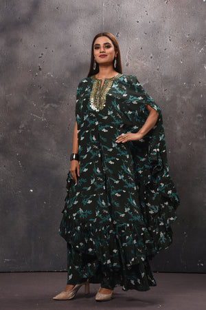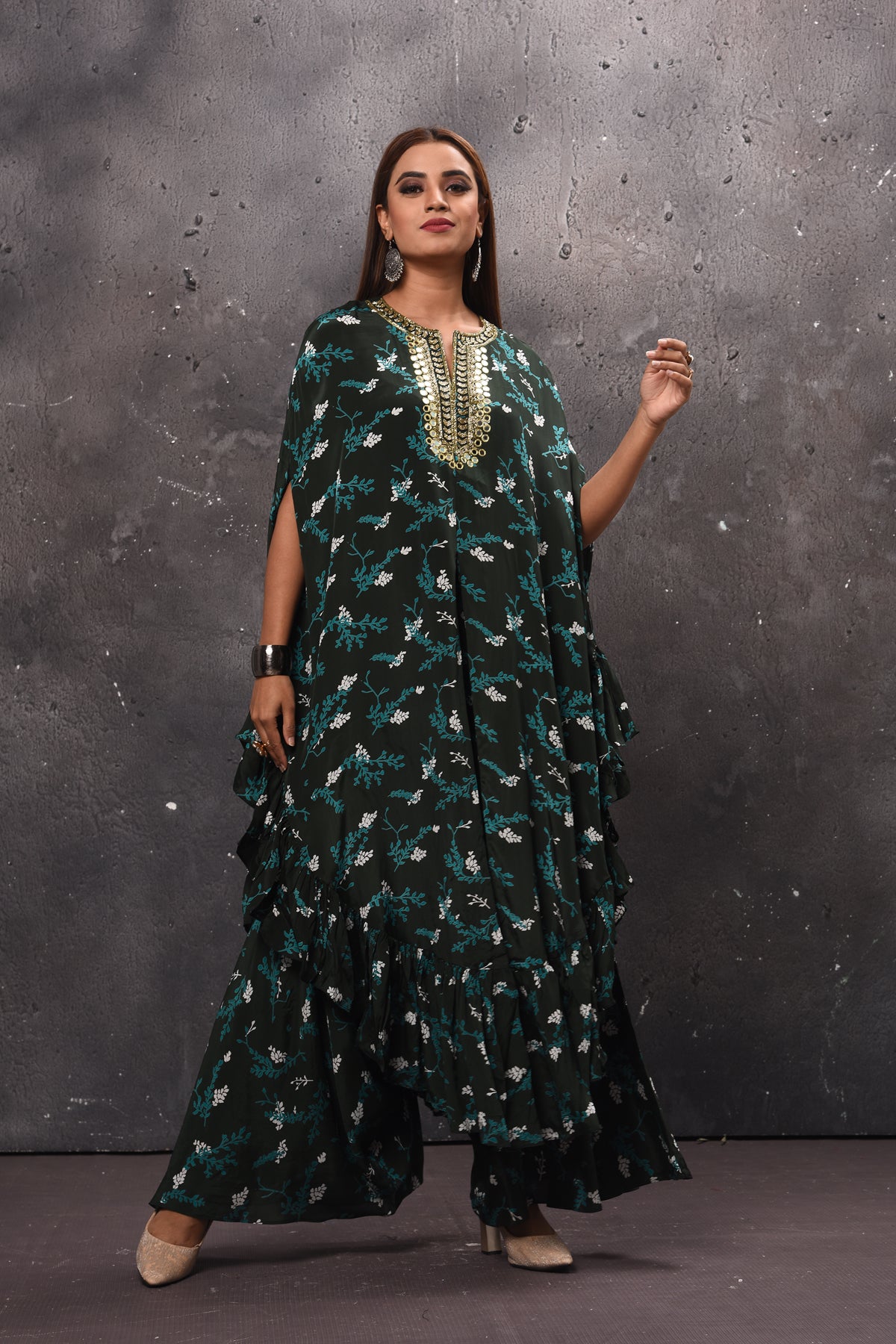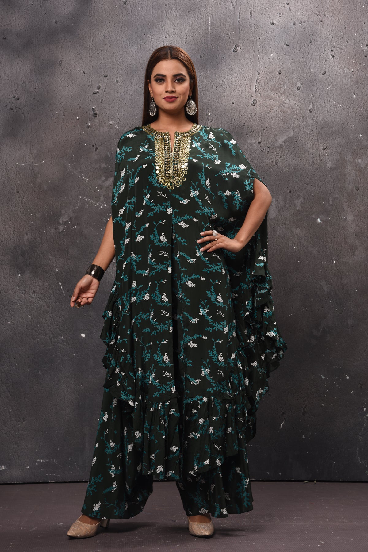 Be a vision of elegance at parties in this stunning black and green printed kaftaan suit with palazzo. Shop designer dresses in USA from Pure Elegance.