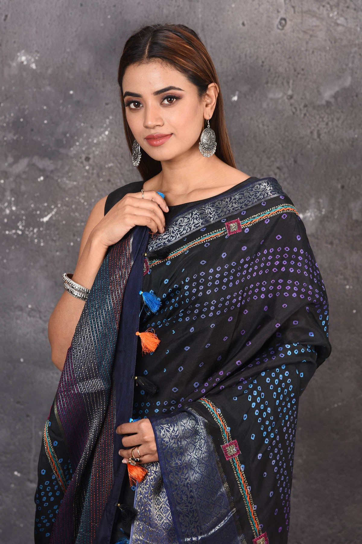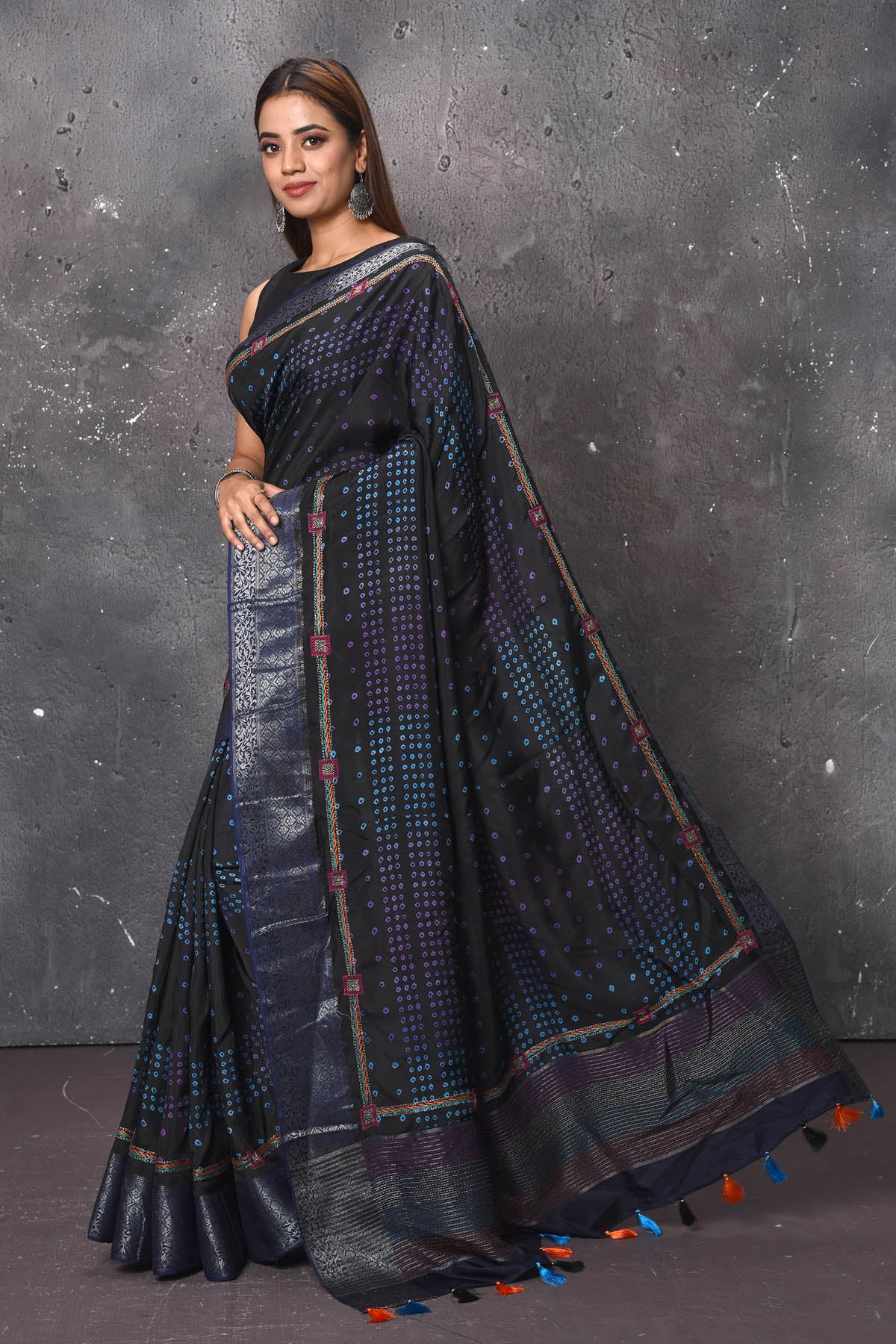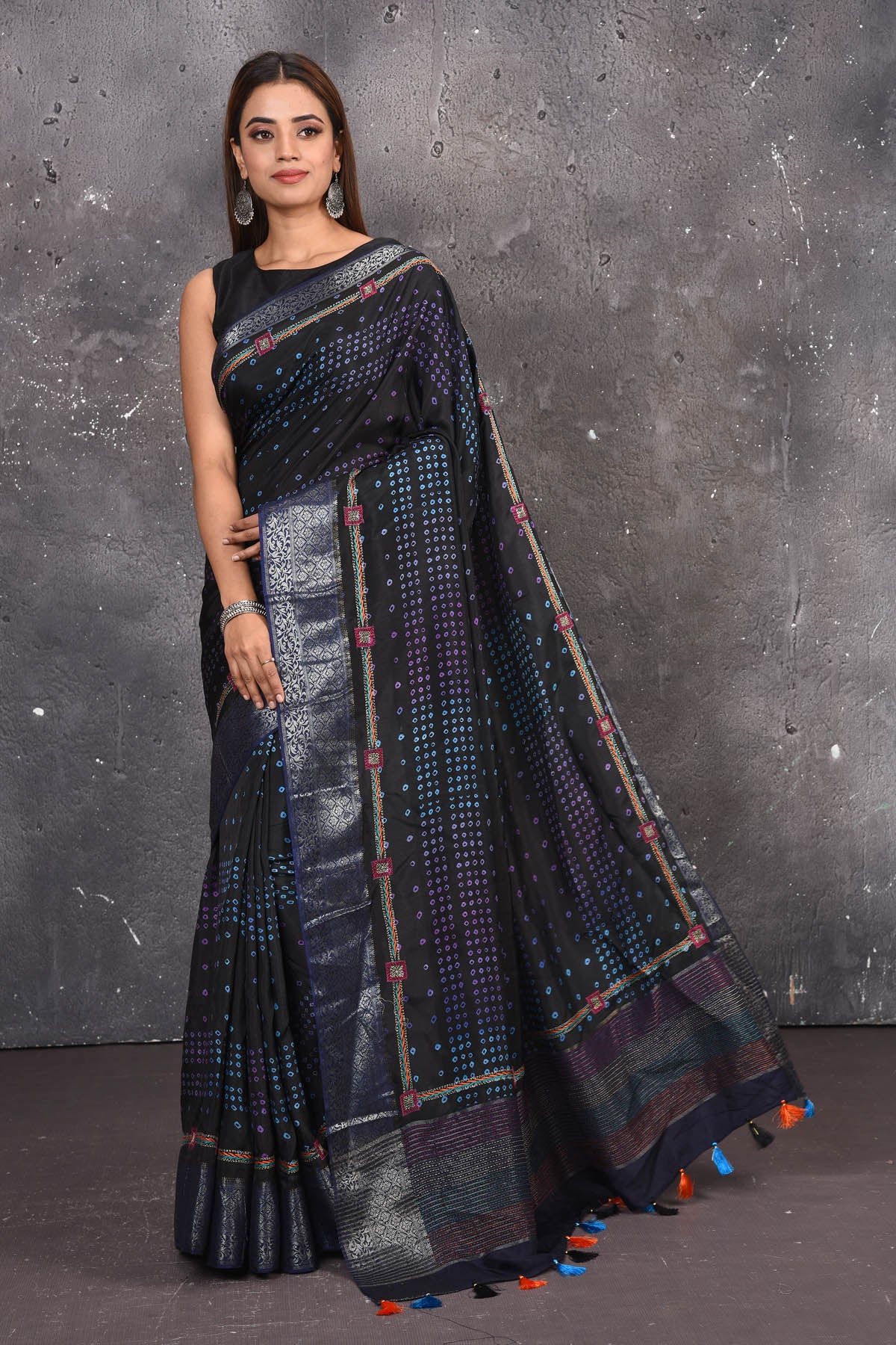 DISCLAIMER:- The shown stitched blouse on the model is for display purpose only. The saree comes with a matching blouse piece and finished with fall and piko.