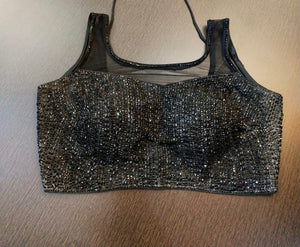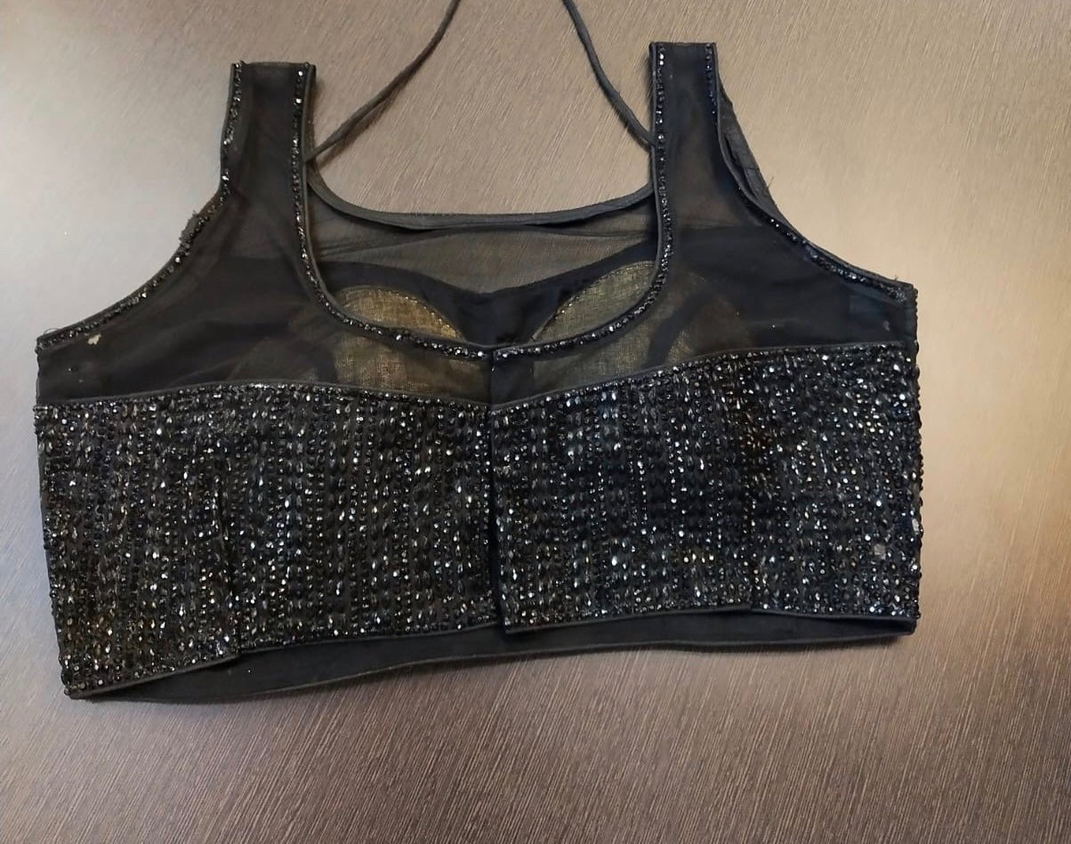 Beautiful black embroidered designer saree blouse. Buy online from Pure Elegance
