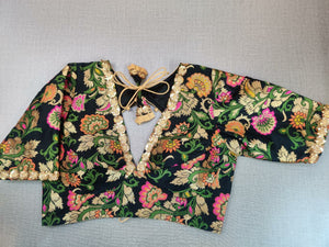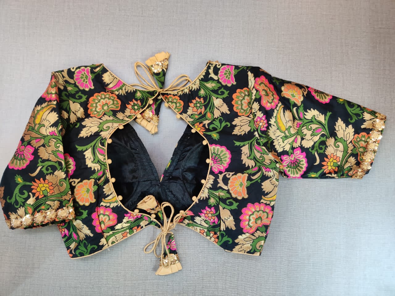 Beautiful black embroidered neckline Banarasi saree blouse. Buy designer blouse in USA from Pure Elegance.