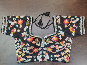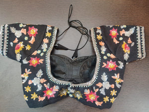 Stunning black floral embroidery desigenr saree blouse. Buy designer blouse in USA from Pure Elegance.