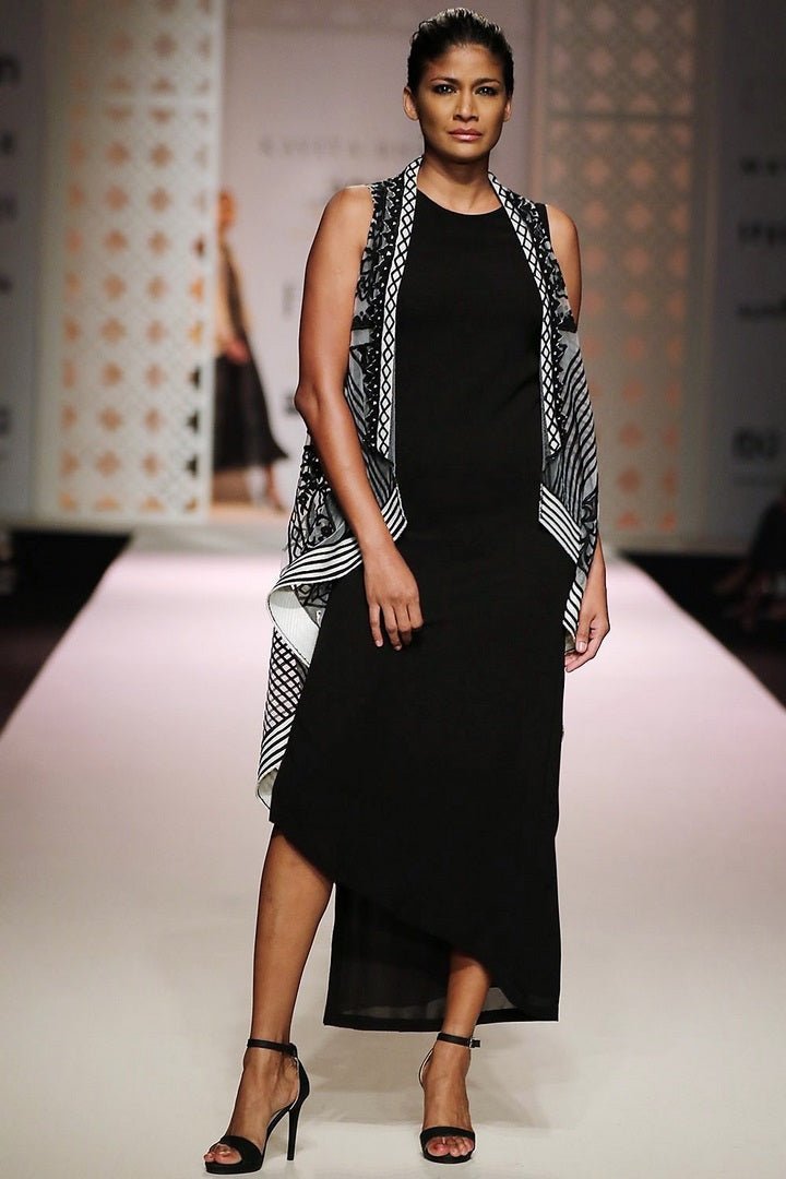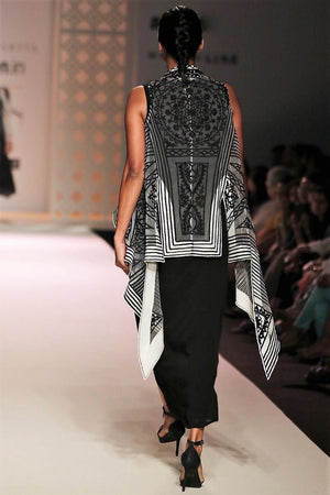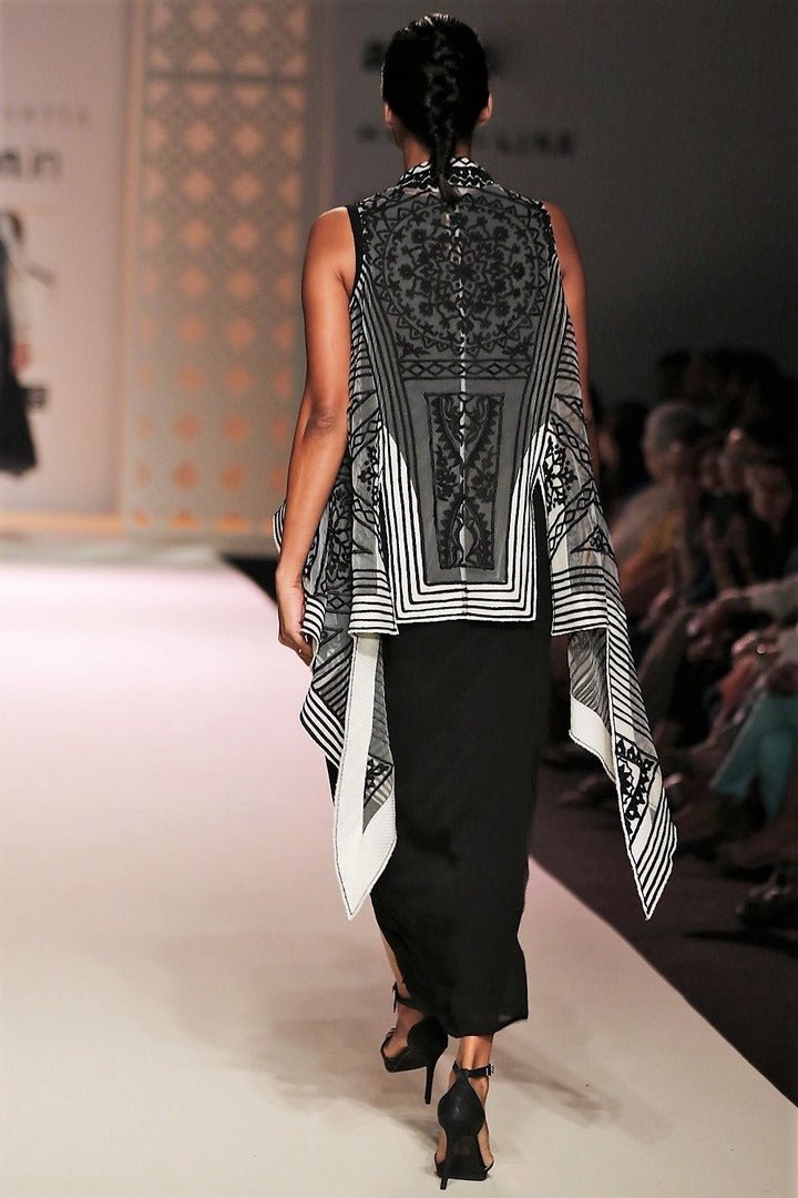 Black will always be a classic! Look captivating in this black high slit dress with aari embroidery cape by Kavita Bhartia on special occasions. The dress is crafted in nylon and georgette. Shop online at Pure Elegance or visit our store in USA.