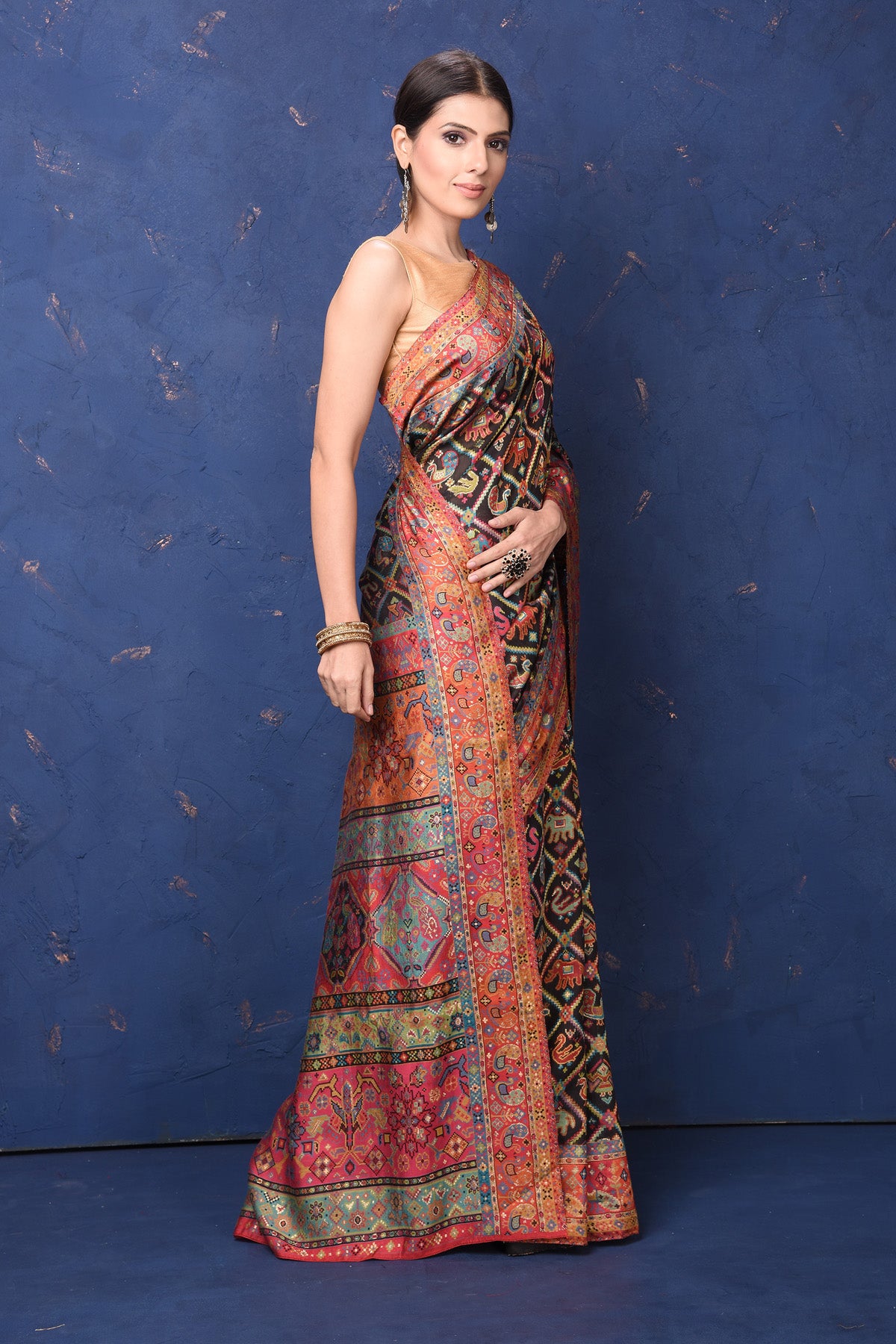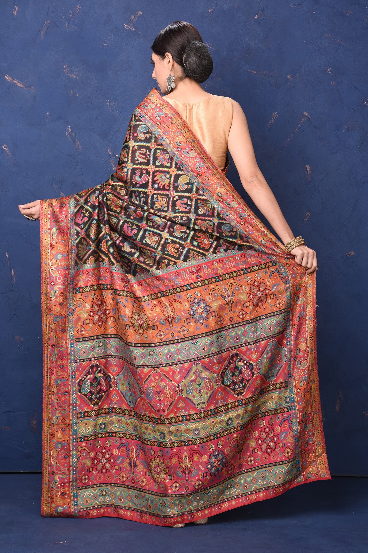 Beautiful black Kani weave saree with multicolor pallu is an exquisite piece for your ethnic wardrobe. It comes with a matching blouse piece. Shop designer sarees in USA from Pure Elegance.