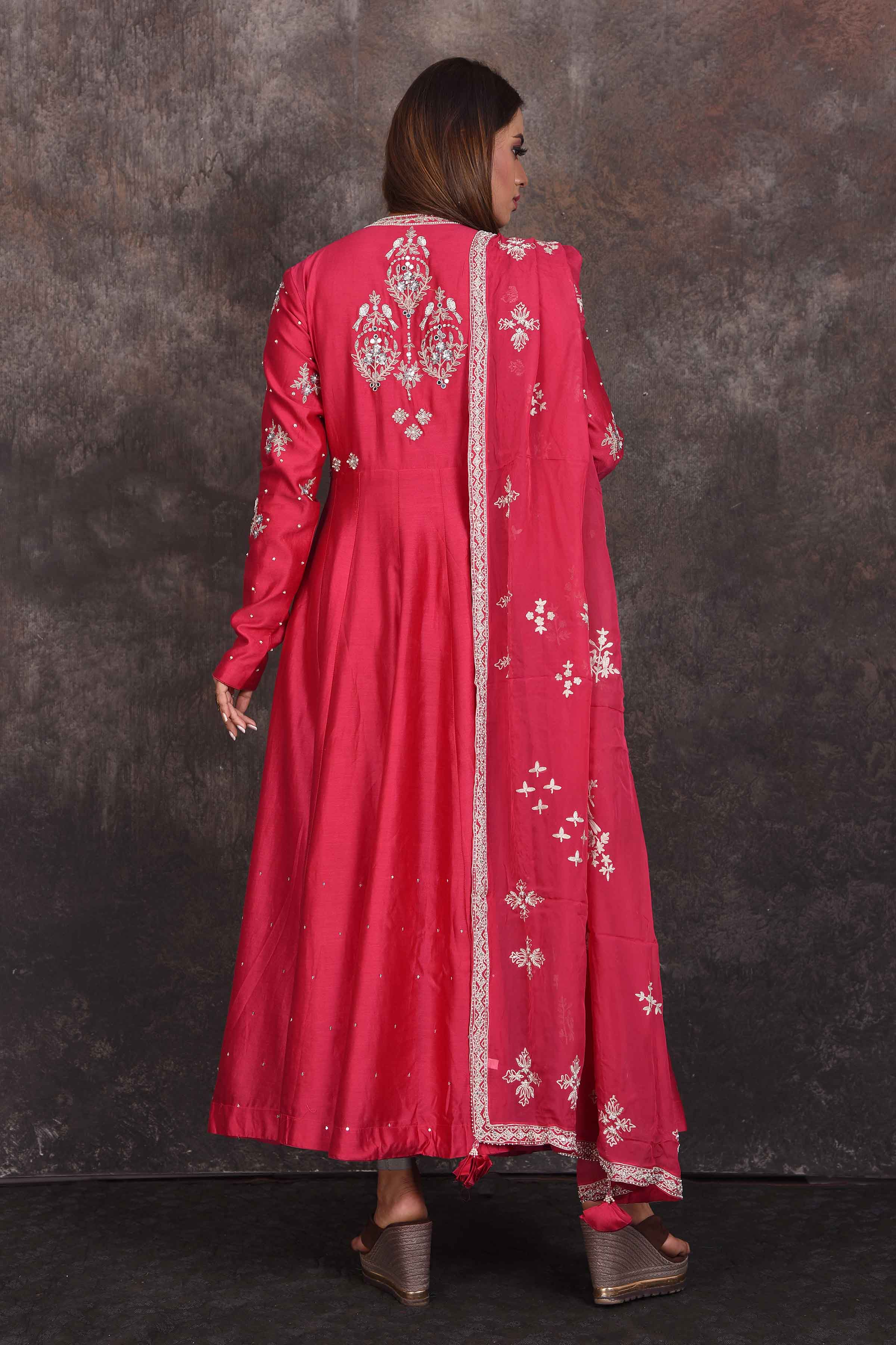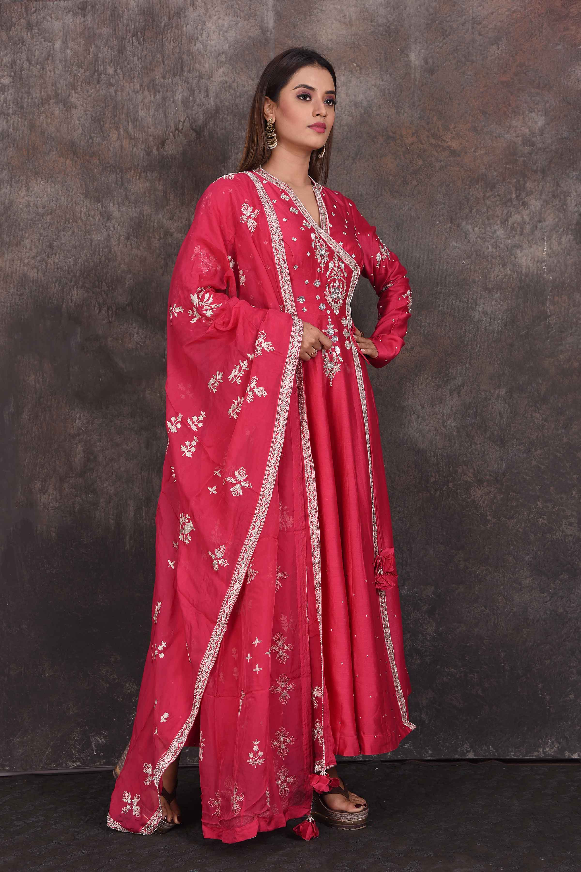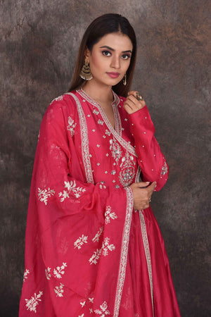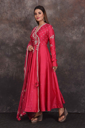 Look simple yet stylish in this beautiful bright pink embroidered Anarkali suit. Shop designer dresses in USA from Pure Elegance.
