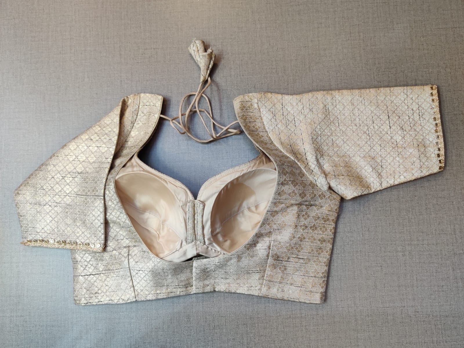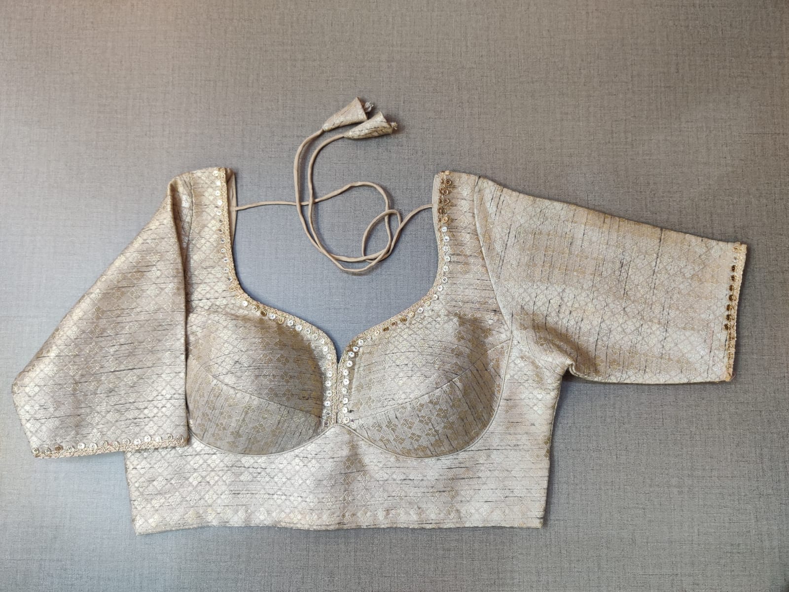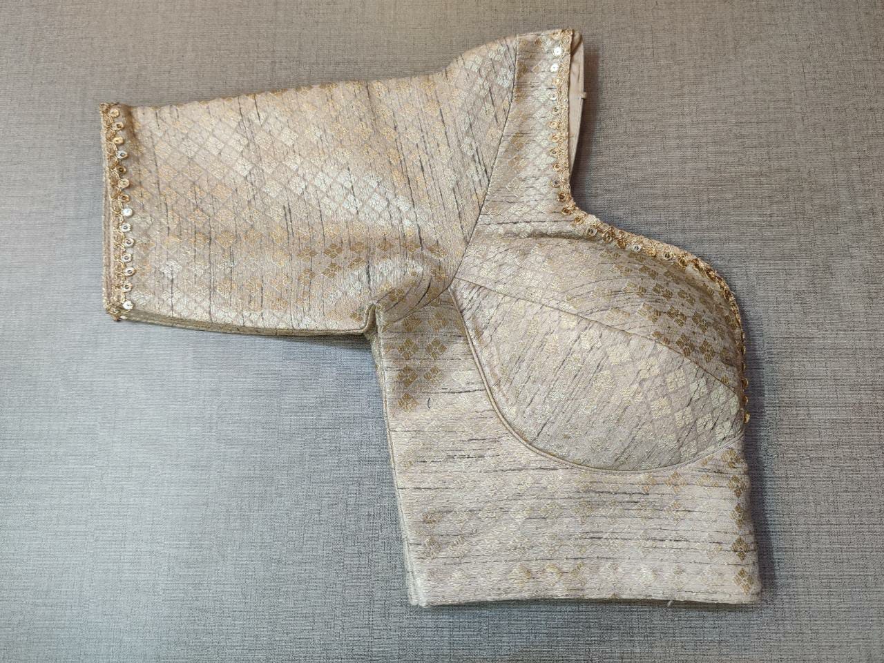Elegant cream Embroidered designer saree blouse. Buy readymade saree blouses in USA from Pure Elegance..