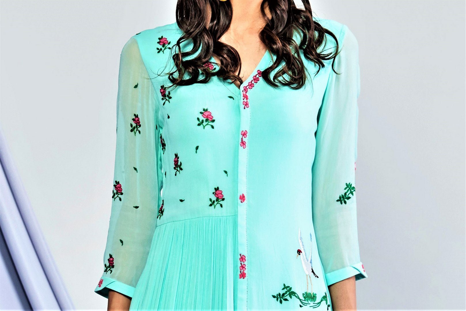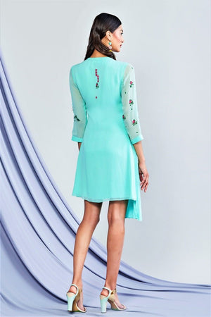 Keep it stylish in this blue embroidered asymmetric georgette dress at parties! Shop online at Pure Elegance or visit our store in USA.