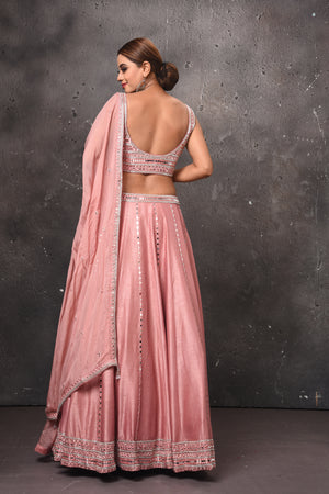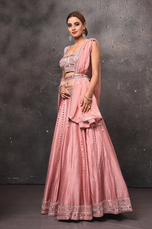300608 Dusty Pink Mirror Work Belted Lehenga with Dupatta