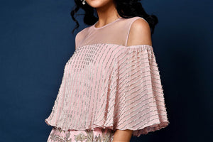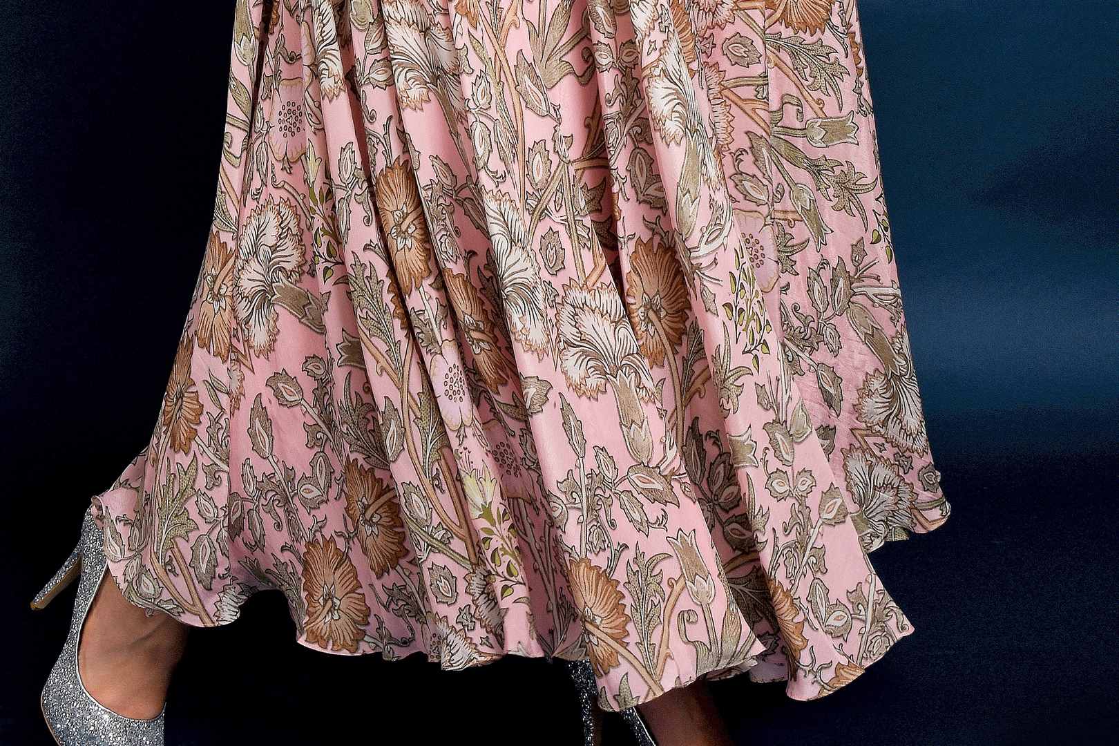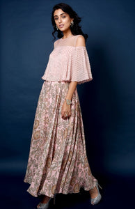 Alluring powder pink printed tube work Anarkali dress by Chhavvi Aggarwal for wedding occasions. The dress is adorned with beautiful floral print and tube work. It is crafted in crepe and georgette. Shop online at Pure Elegance or visit our store in USA.