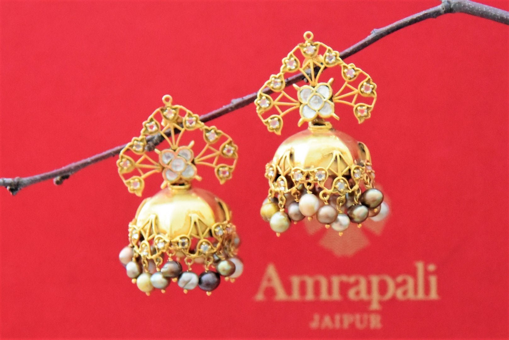 Beautiful gold plated floral top jhumki with pearl drops from Amrapali. Shop gold plated jewelry online in USA from Pure Elegance.