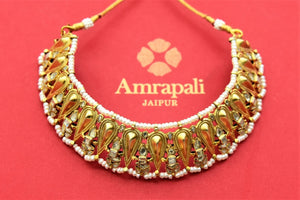 Beautiful gold plated kundan choker necklace with pearls piroyi. Shop Amrapali jewelry in USA from Pure Elegance.