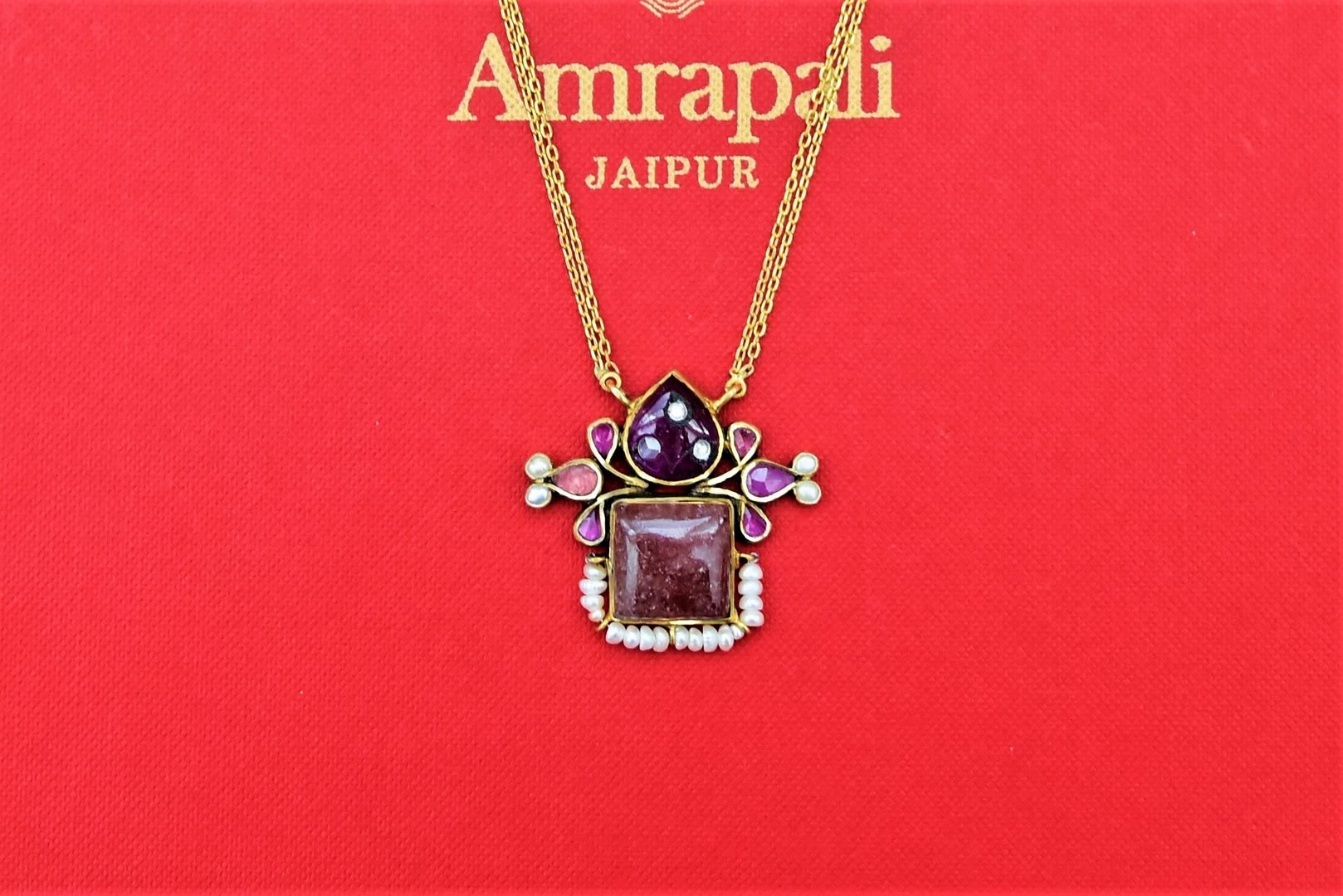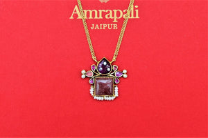 Beautiful gold plated purple stones pendant necklace. Shop Amrapali jewelry in USA from Pure Elegance.