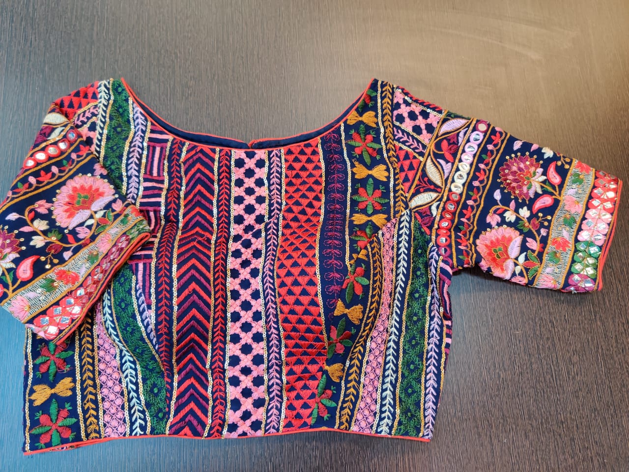 Gorgeous multicolor embroidery readymade sari blouse. Shop designer saree blouse online in USA from Pure Elegance.