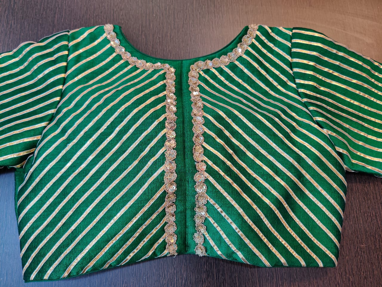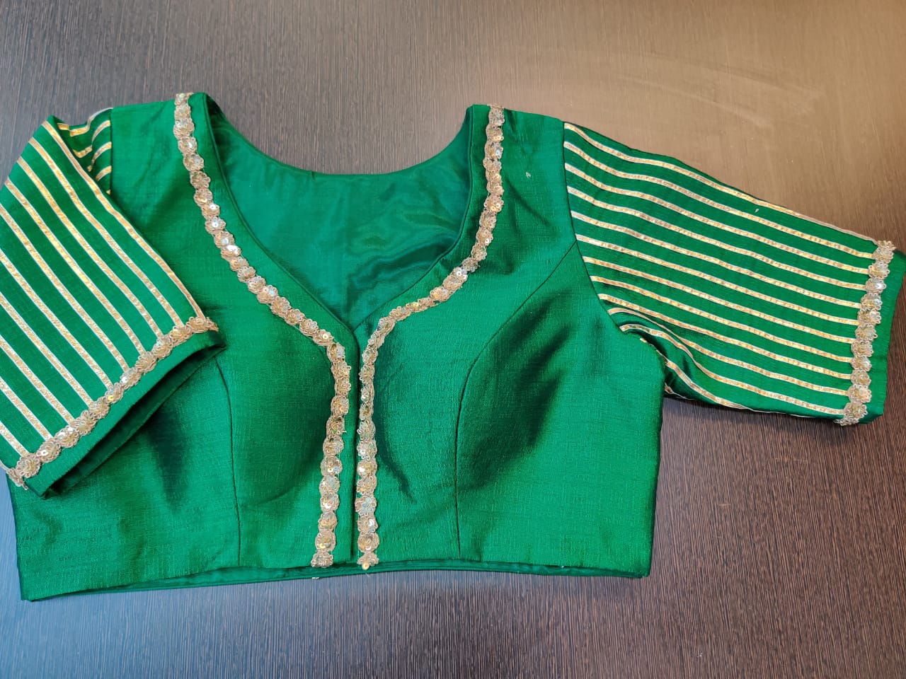 Beautiful green embroidered saree bloue with gota lace. Shop designer saree blouse online in USA from Pure Elegance.